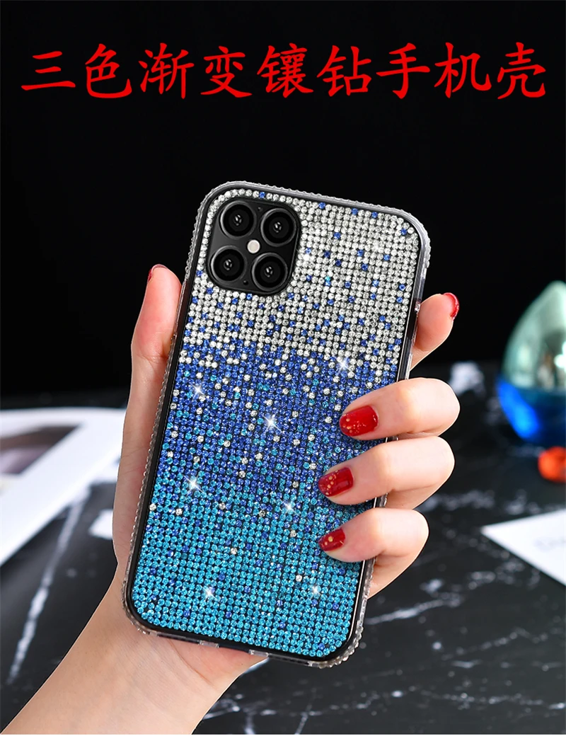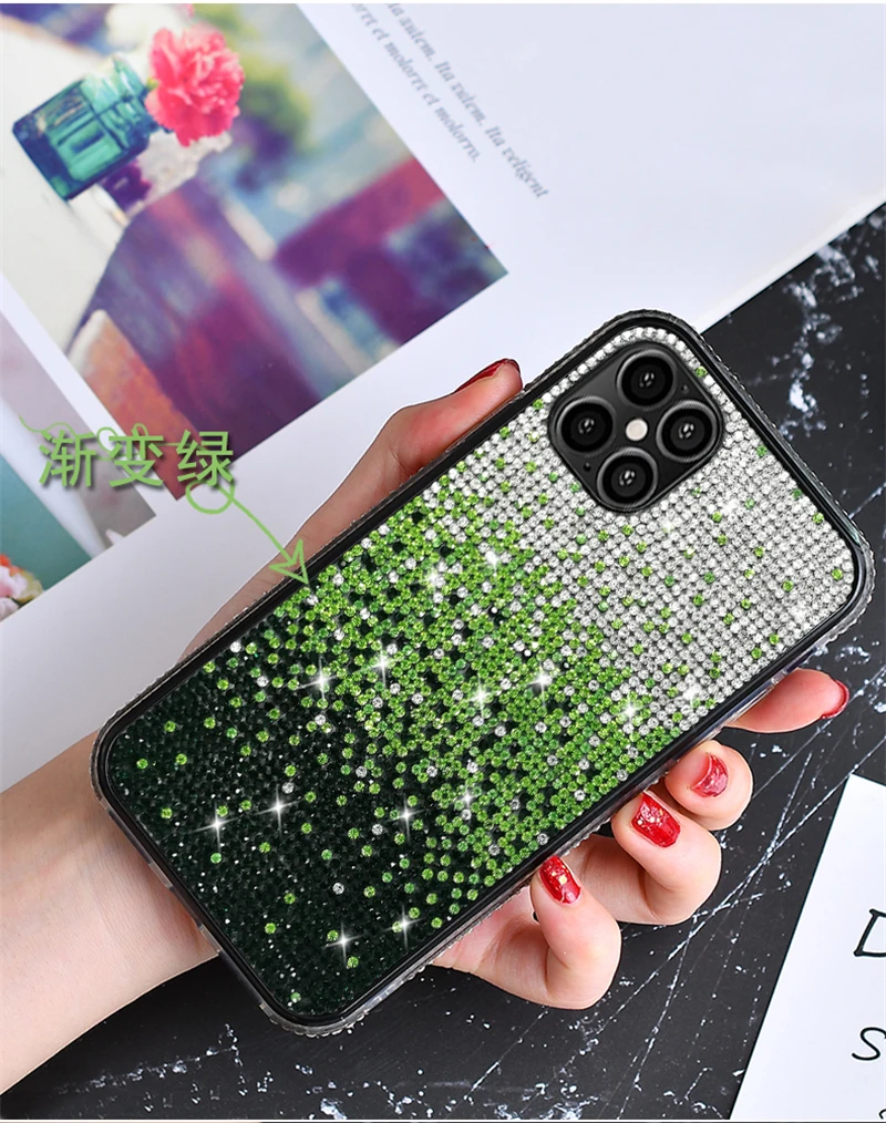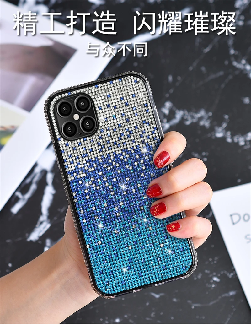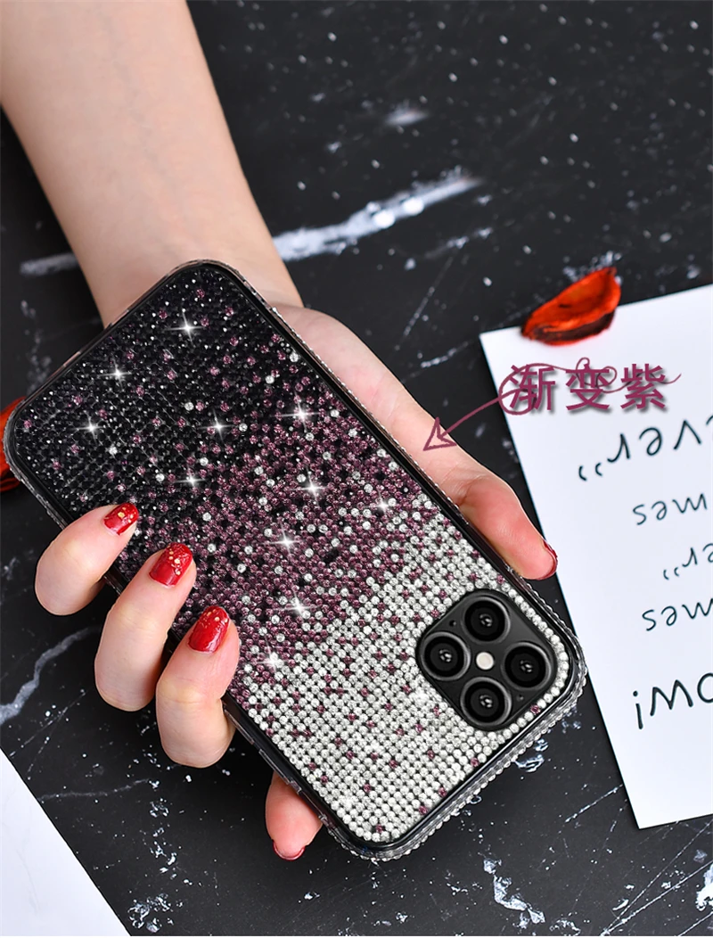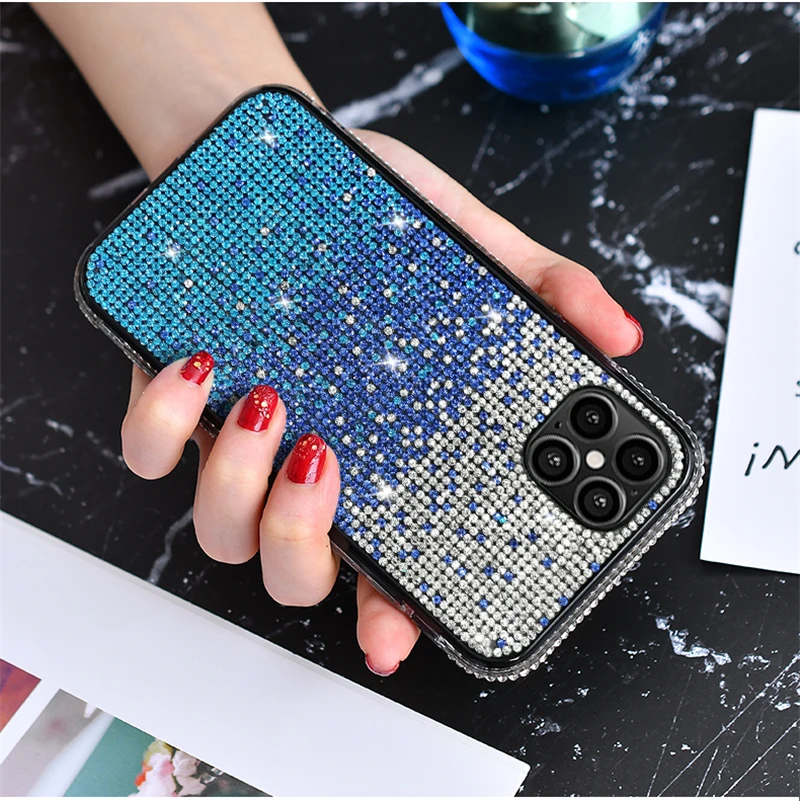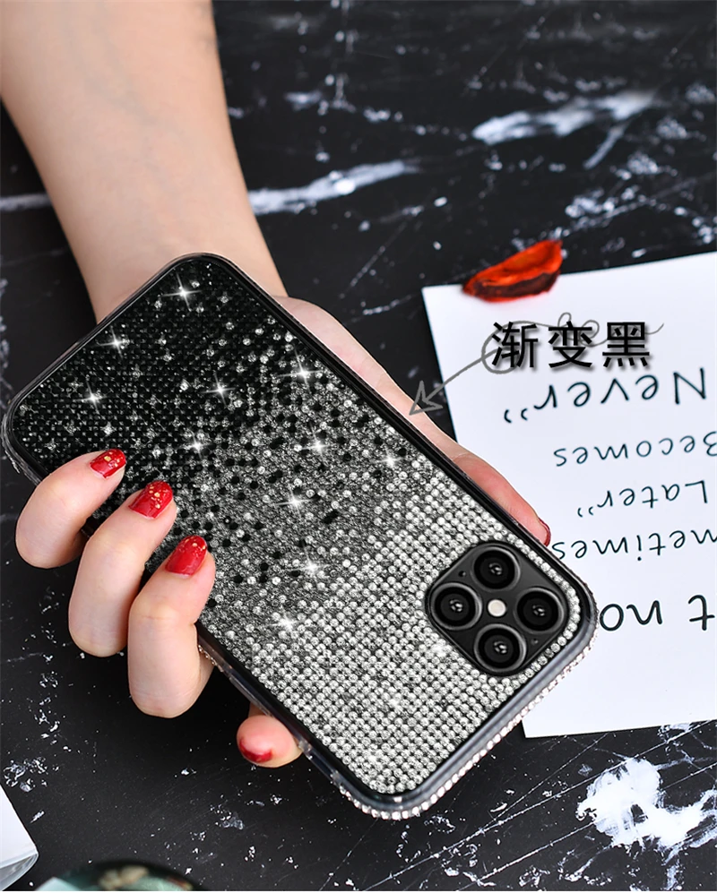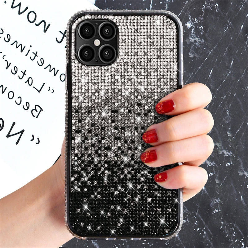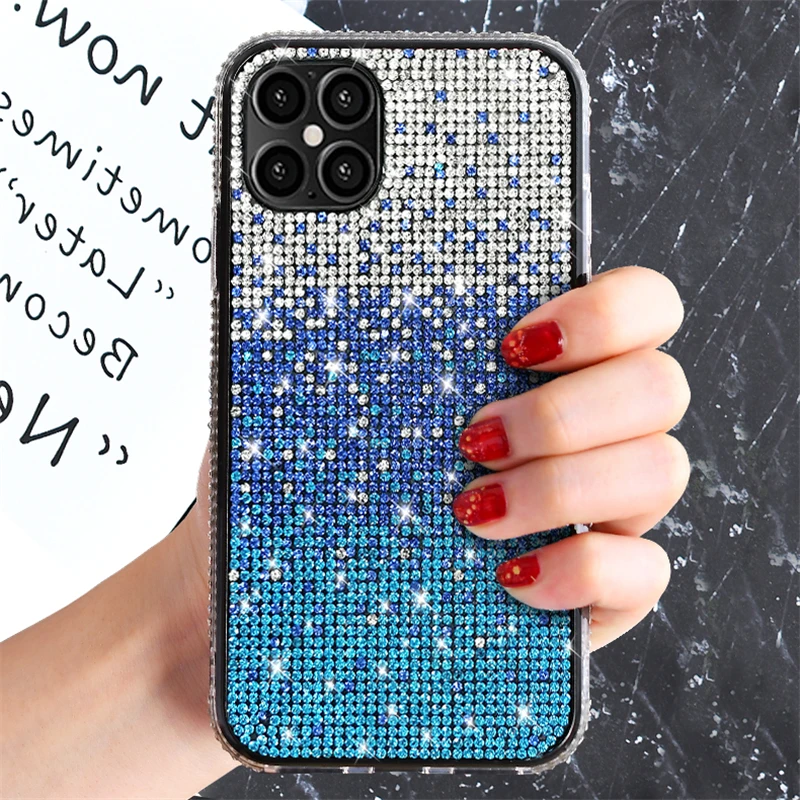 حافظة فاخرة مرصعة بالألماس اللامع لهاتف آيفون 13 12 11 برو Xs Max Mini SE X XR 7 8 6 Plus حافظة ناعمة مرصعة بحجر الراين