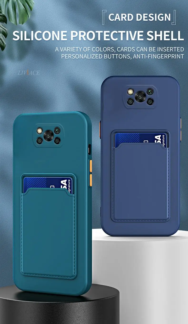 حامل بطاقة جيب قضية الهاتف ل شاومي Mi Poco X3 Nfc X3 برو Poco M3 برو F3 X2 M2 X3 GT سيليكون محفظة فتحة بطاقة الغطاء الخلفي