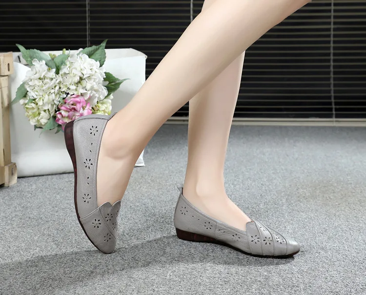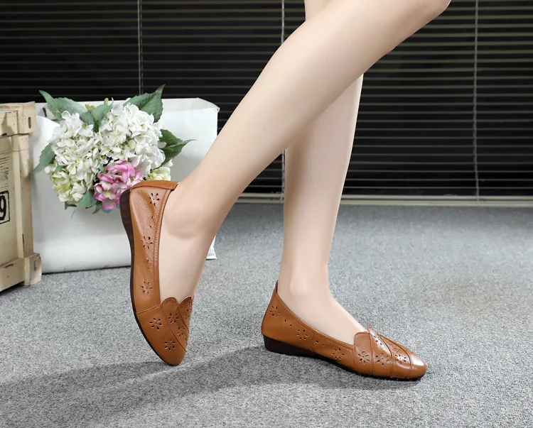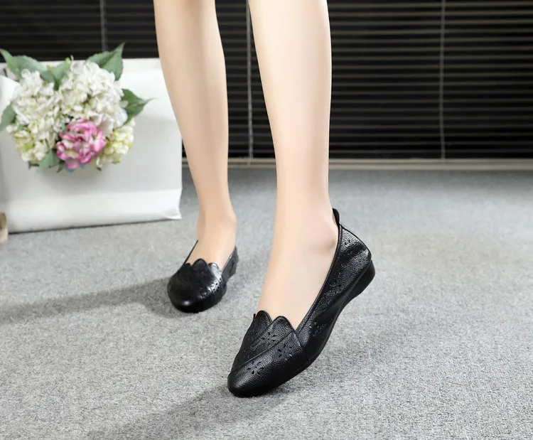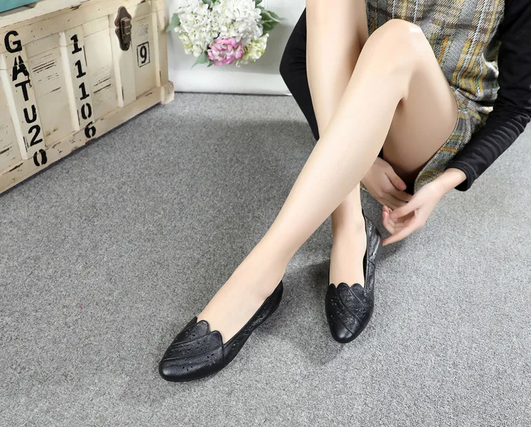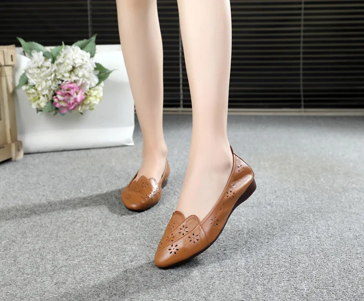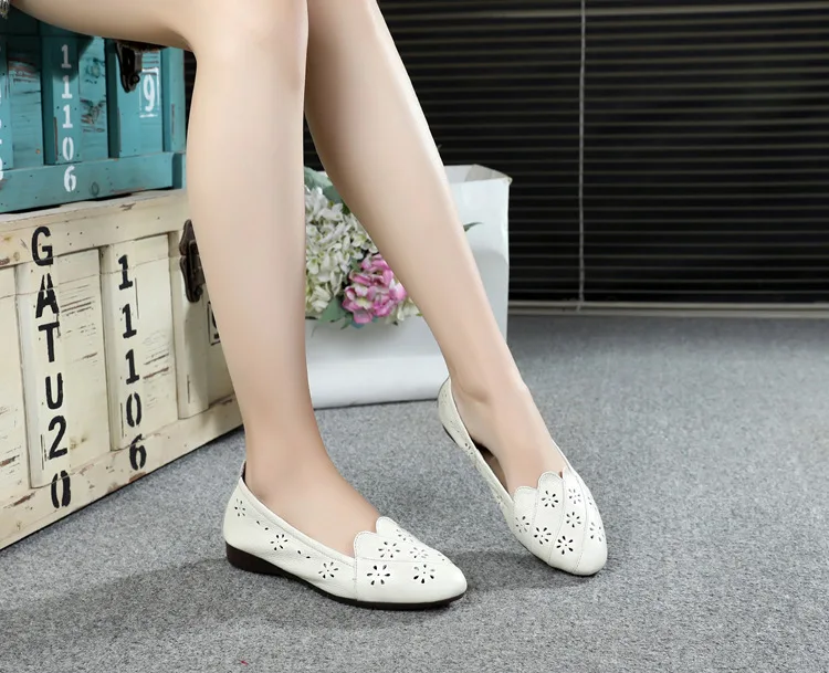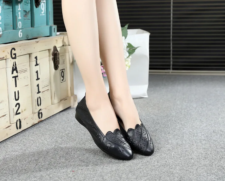 حجم كبير 35 – 43 الصيف النساء أحذية امرأة جلد طبيعي صندل مسطح صندل عادي تنفس النساء الصنادل