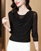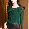 حجم M-3XL النساء لينة كم كامل تي شيرت سيدة أنيقة مطاطا الأسود بلايز تيز أنثى موضة شبكة تي شيرت