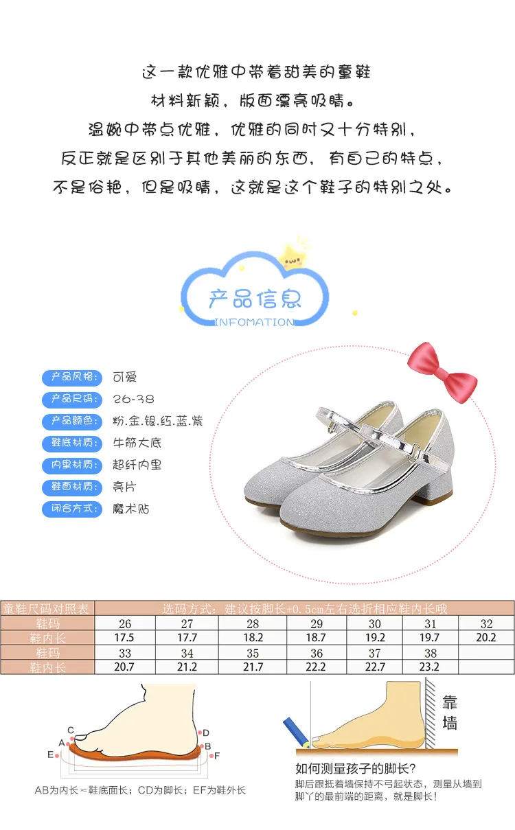 حذاء بناتي ذو كعوب عالية موديل 2023 للأطفال بأربع مواسم حذاء برنسيس للأطفال للربيع والخريف حذاء بنعل أملس مزين بالترتر