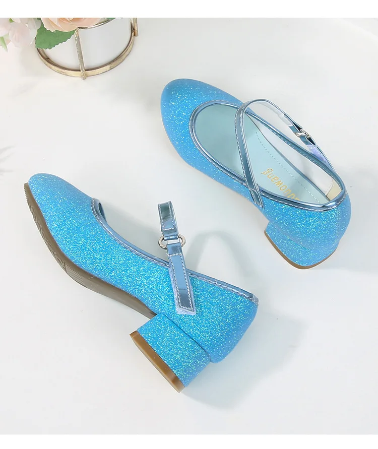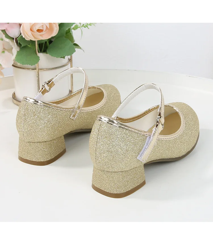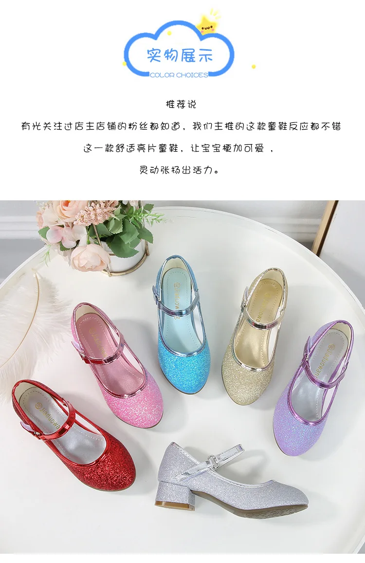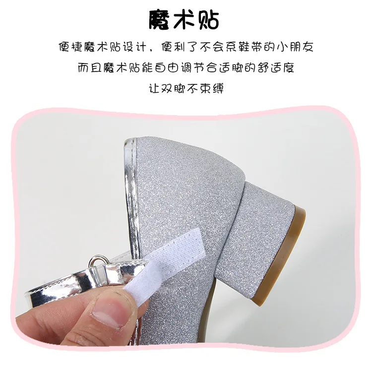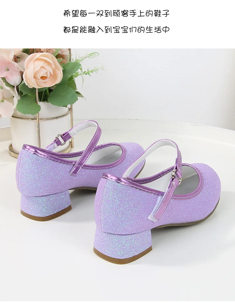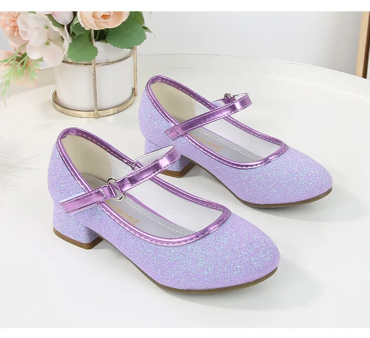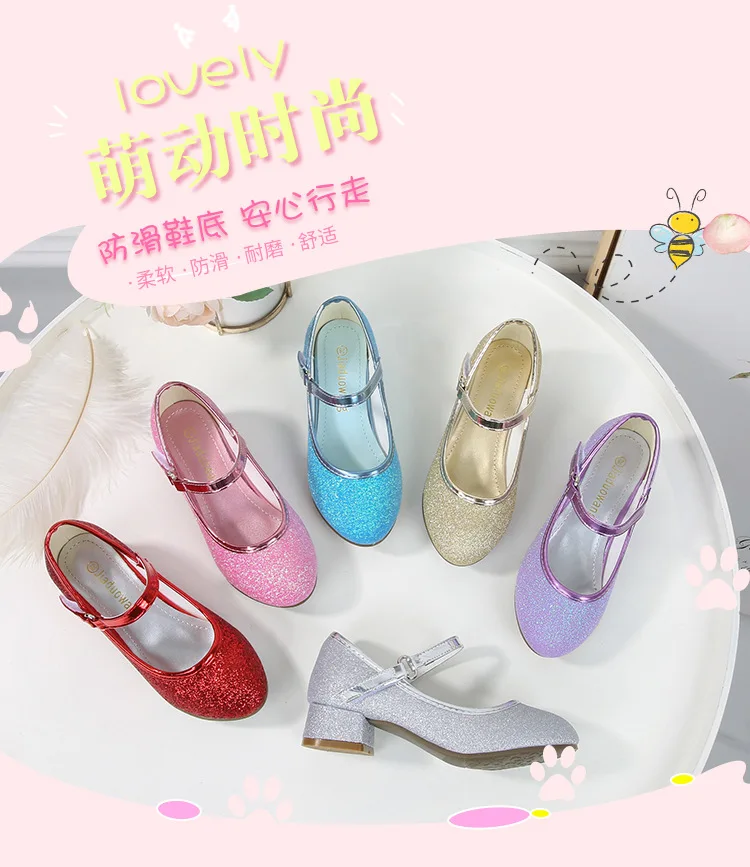 حذاء بناتي ذو كعوب عالية موديل 2023 للأطفال بأربع مواسم حذاء برنسيس للأطفال للربيع والخريف حذاء بنعل أملس مزين بالترتر