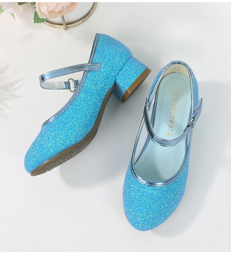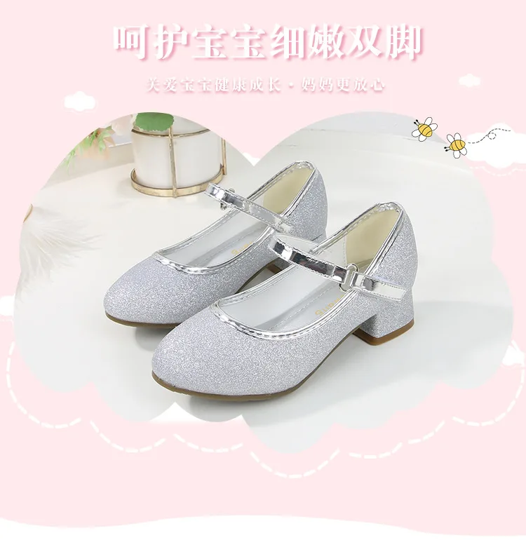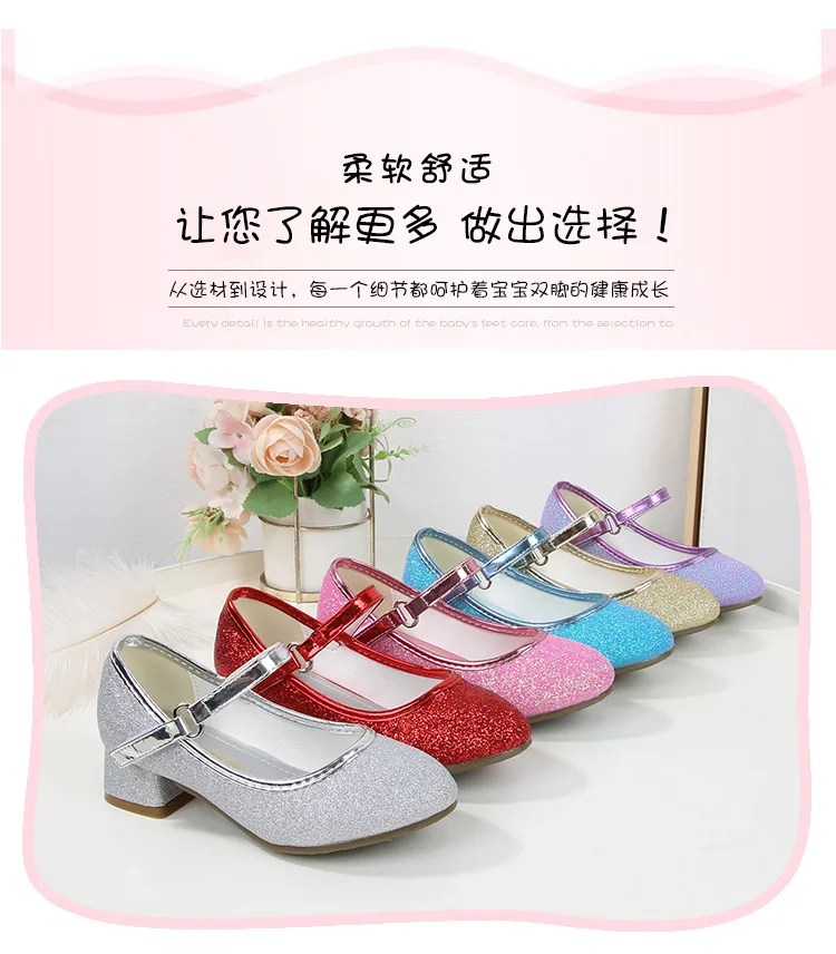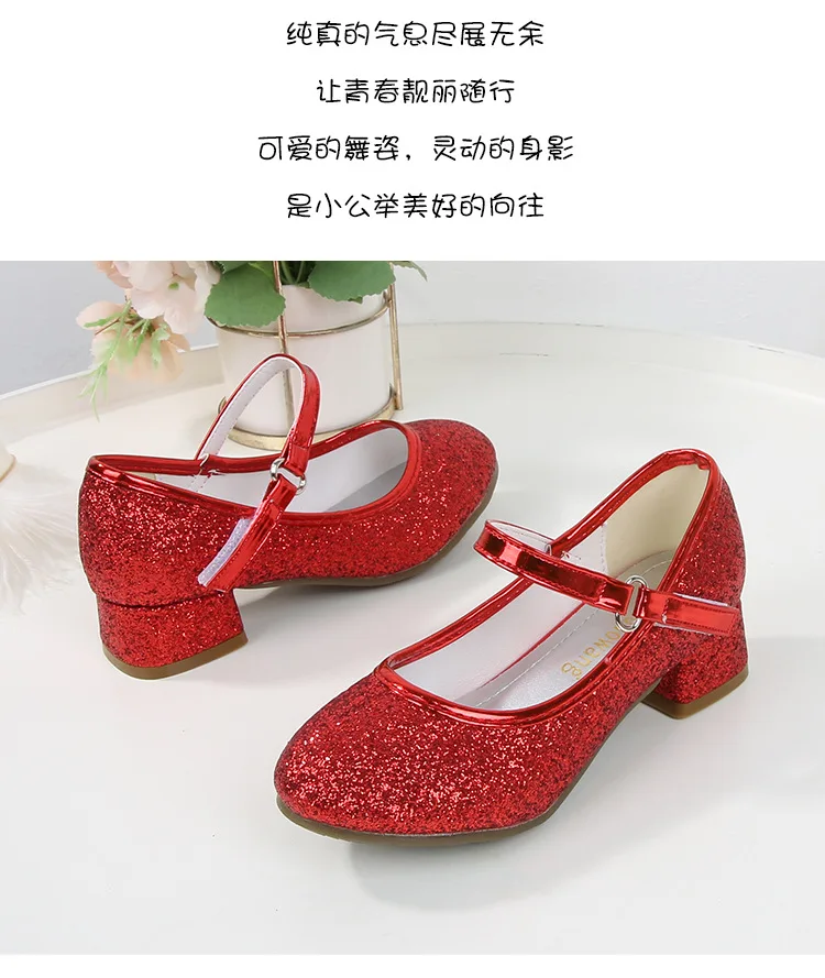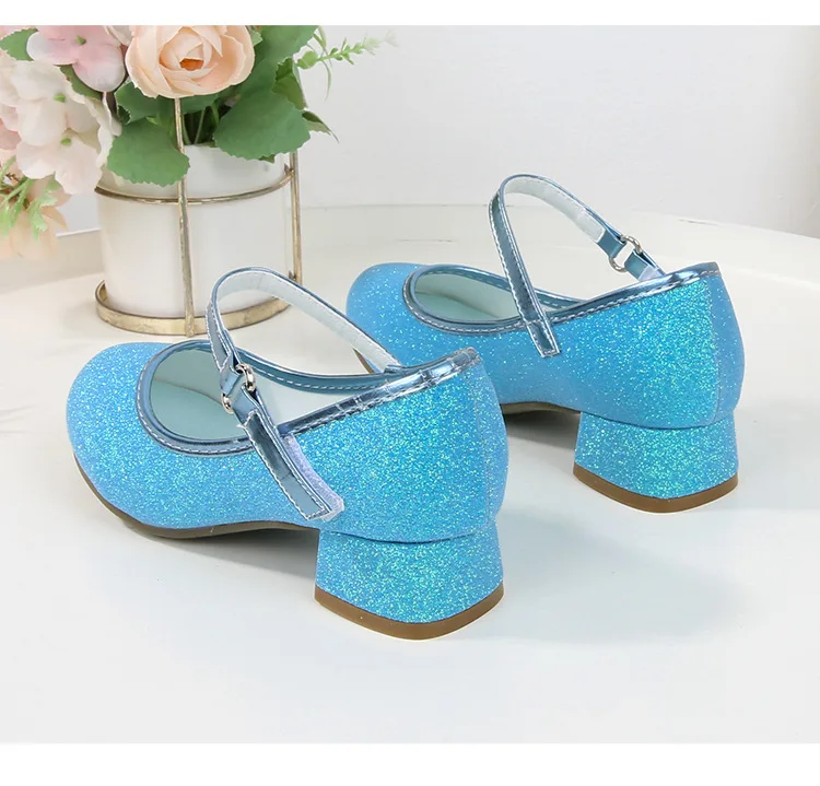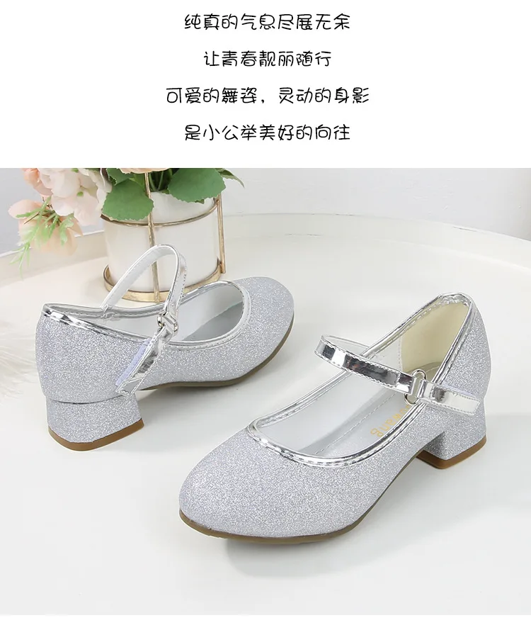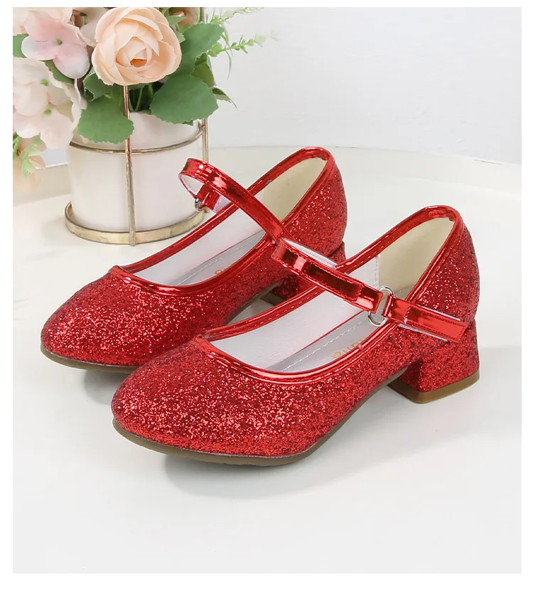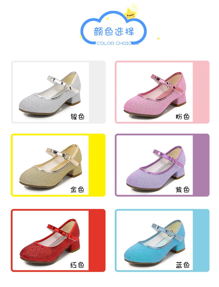 حذاء بناتي ذو كعوب عالية موديل 2023 للأطفال بأربع مواسم حذاء برنسيس للأطفال للربيع والخريف حذاء بنعل أملس مزين بالترتر