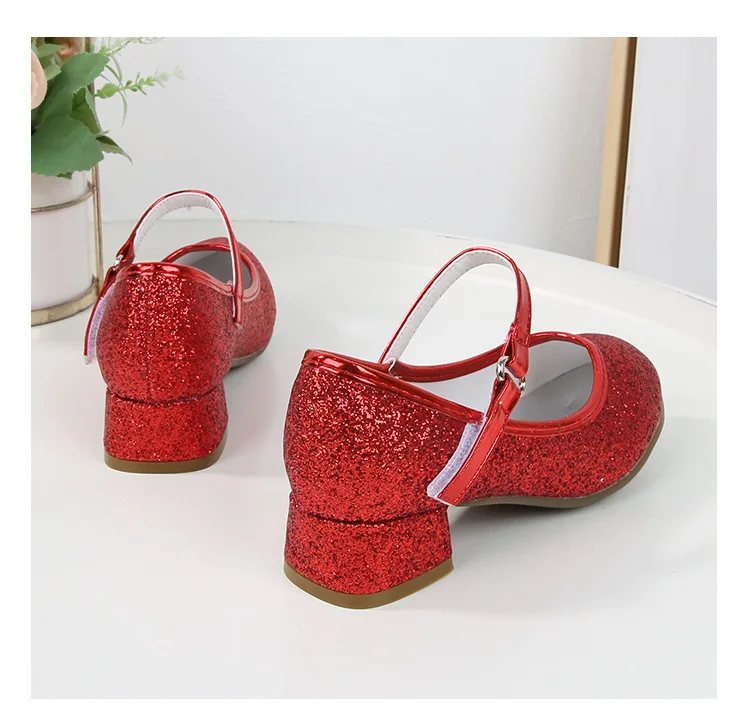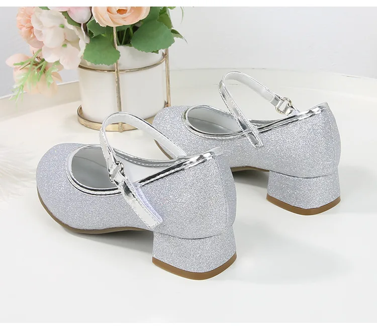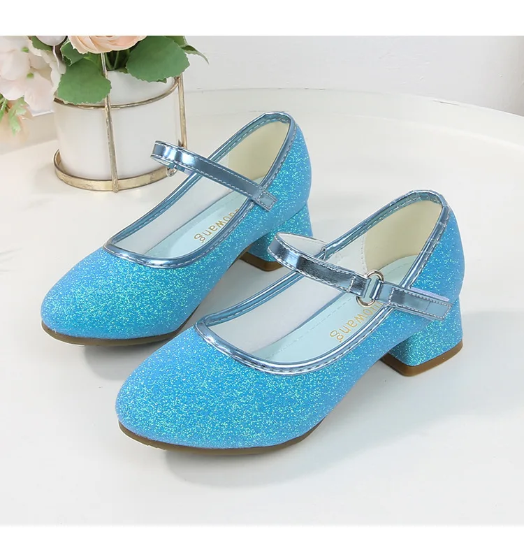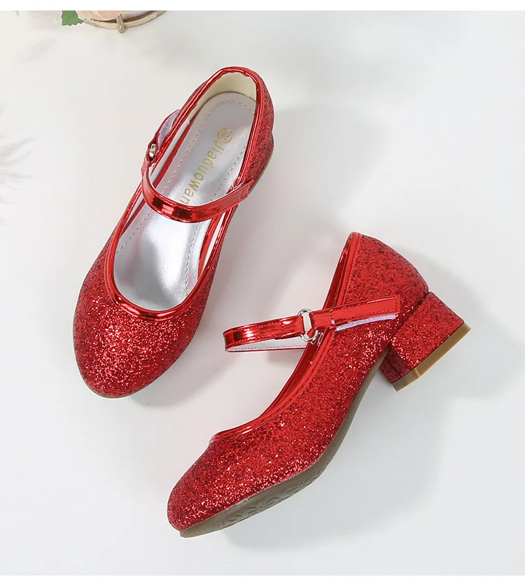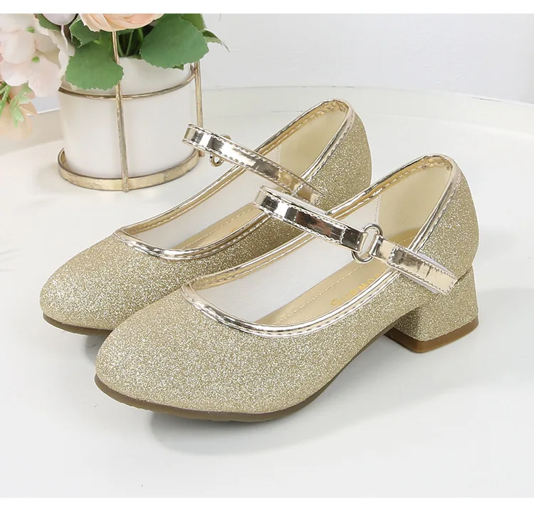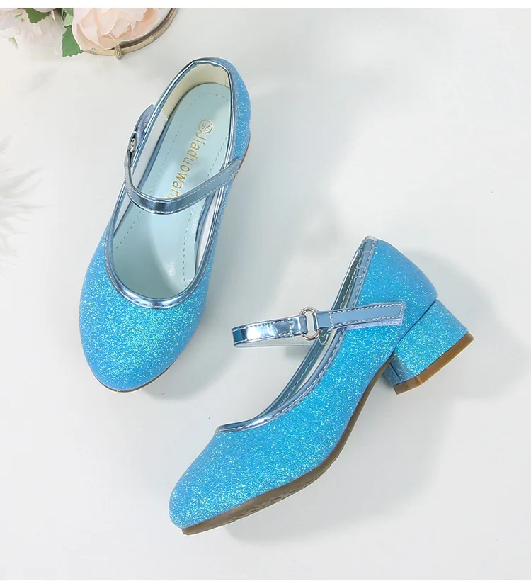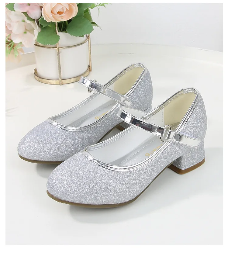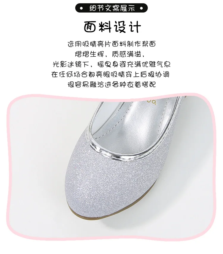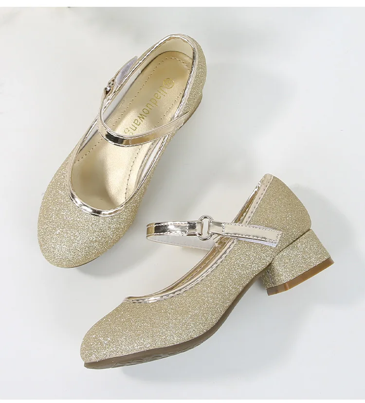 حذاء بناتي ذو كعوب عالية موديل 2023 للأطفال بأربع مواسم حذاء برنسيس للأطفال للربيع والخريف حذاء بنعل أملس مزين بالترتر
