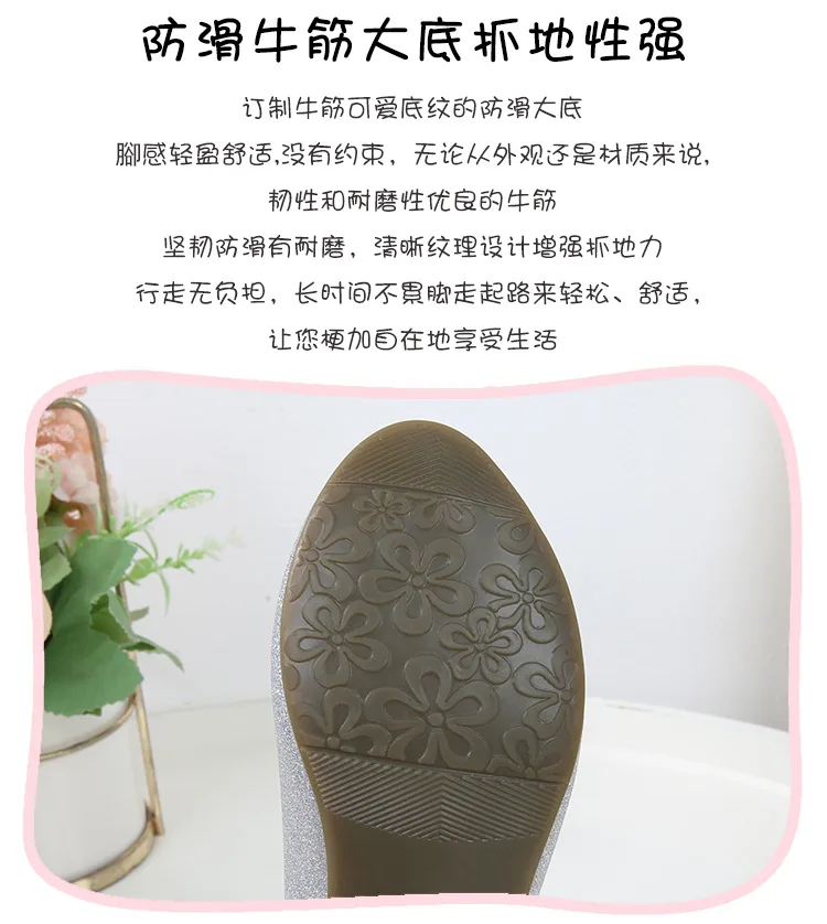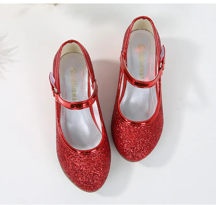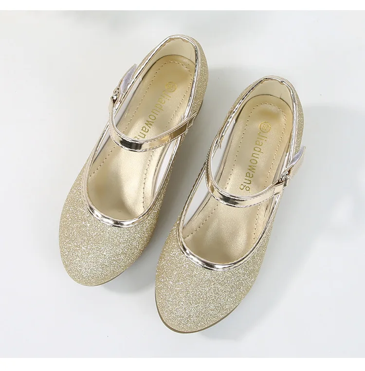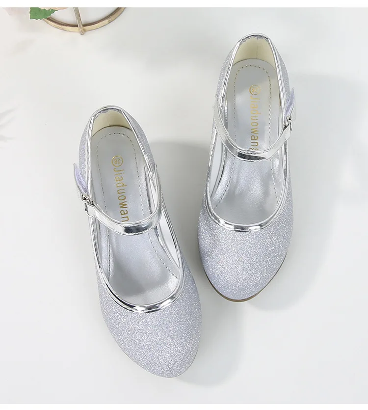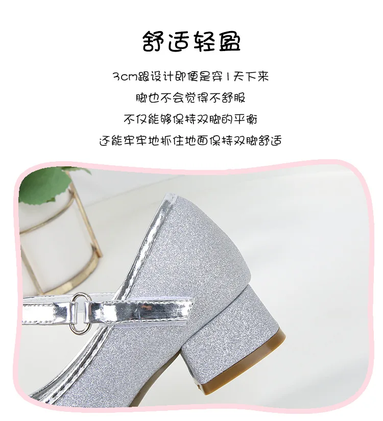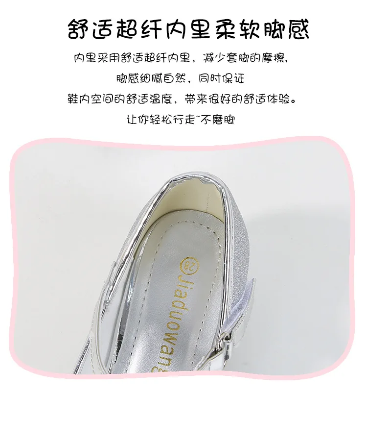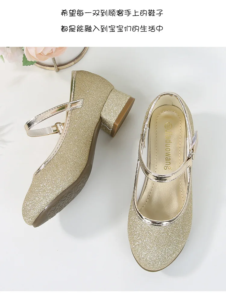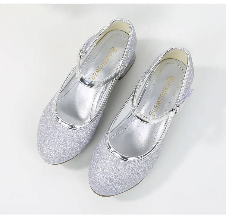 حذاء بناتي ذو كعوب عالية موديل 2023 للأطفال بأربع مواسم حذاء برنسيس للأطفال للربيع والخريف حذاء بنعل أملس مزين بالترتر