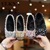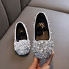 حذاء جديد بناتي مسطح مزود بفيونكة وحجر الراين للأطفال حذاء باللون الوردي الفاتح مطرز بالخرز 2023 حذاء فردي أحذية برنسيس ويند على الموضة