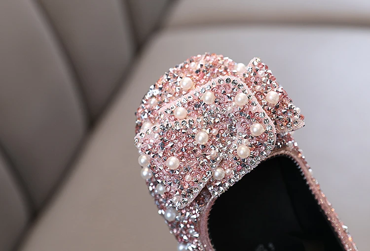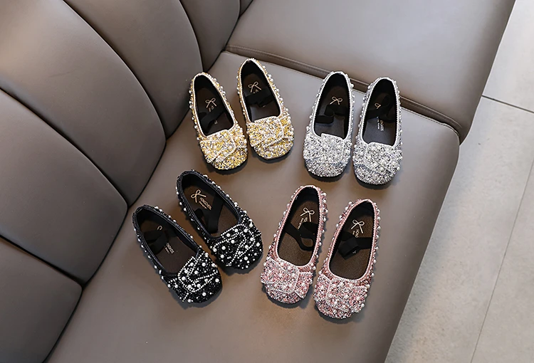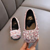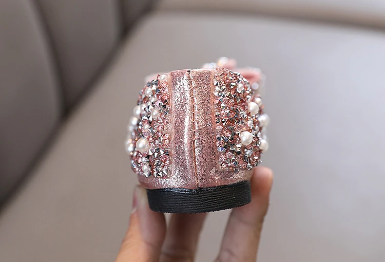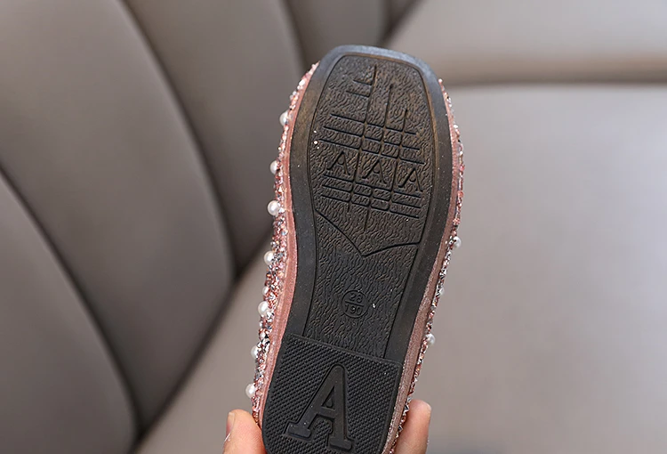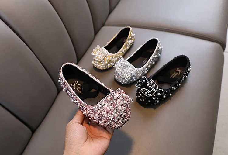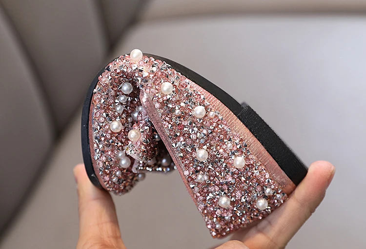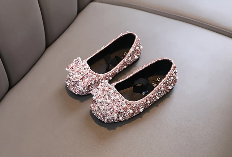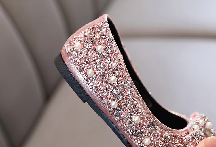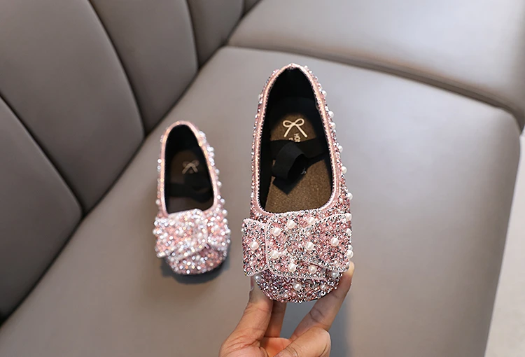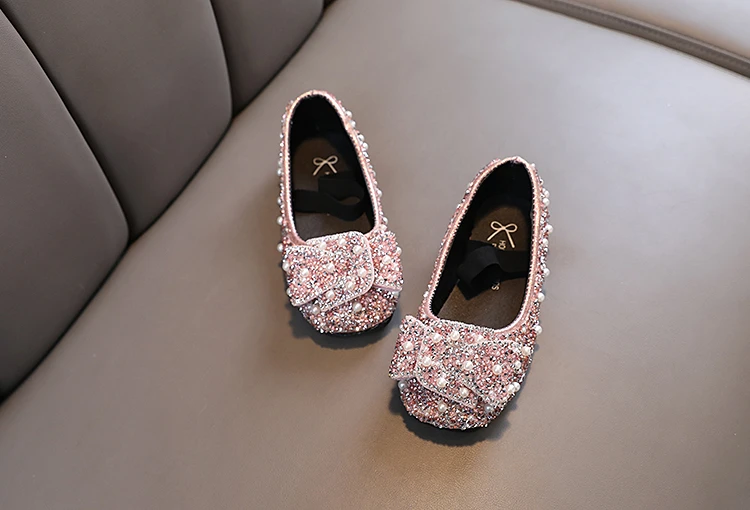 حذاء جديد بناتي مسطح مزود بفيونكة وحجر الراين للأطفال حذاء باللون الوردي الفاتح مطرز بالخرز 2023 حذاء فردي أحذية برنسيس ويند على الموضة