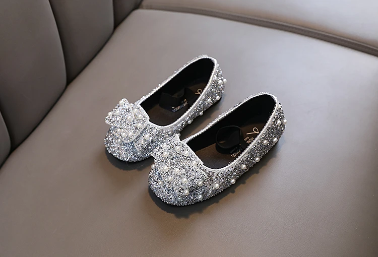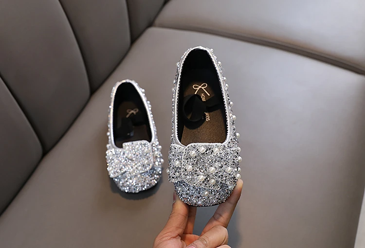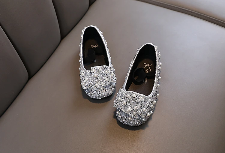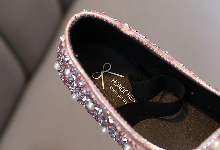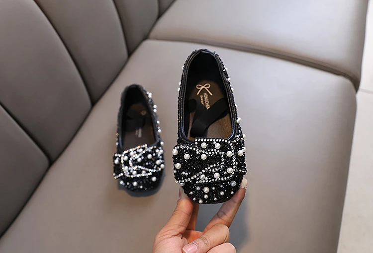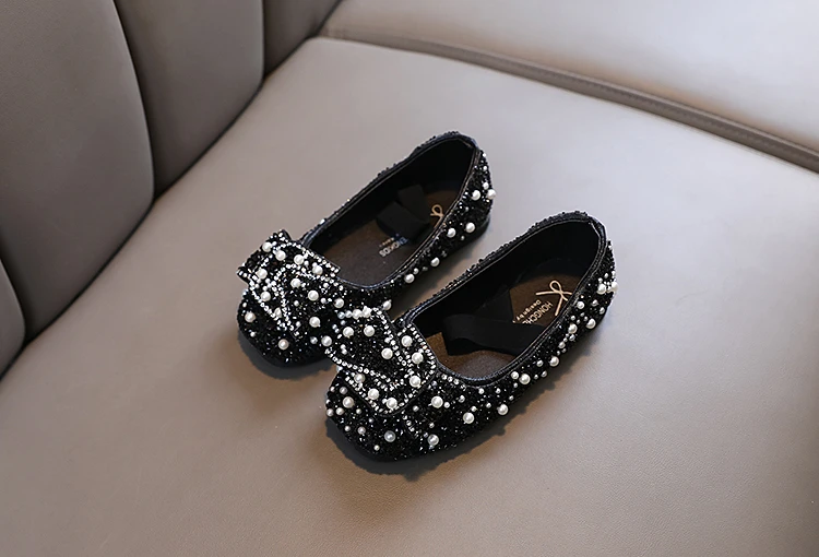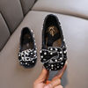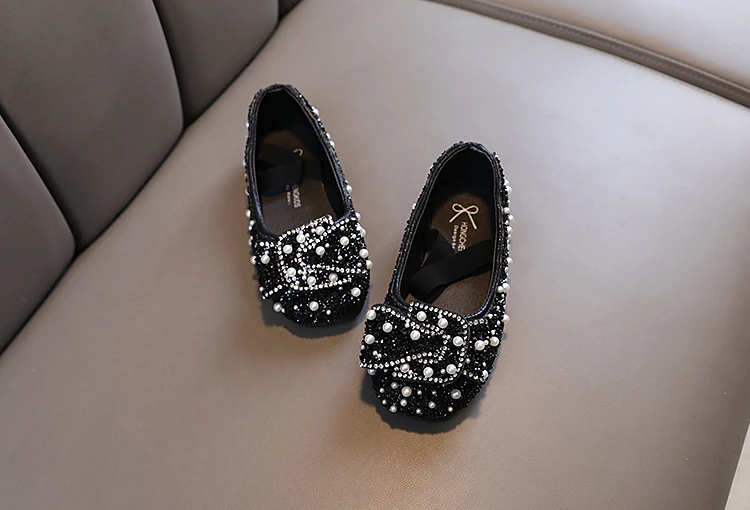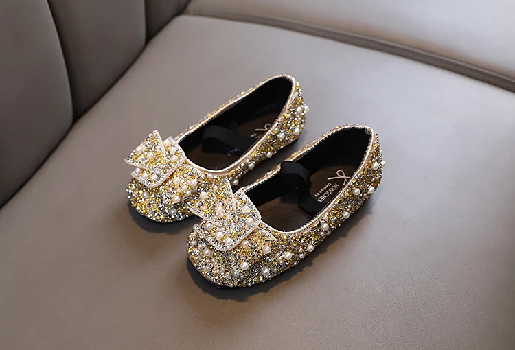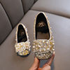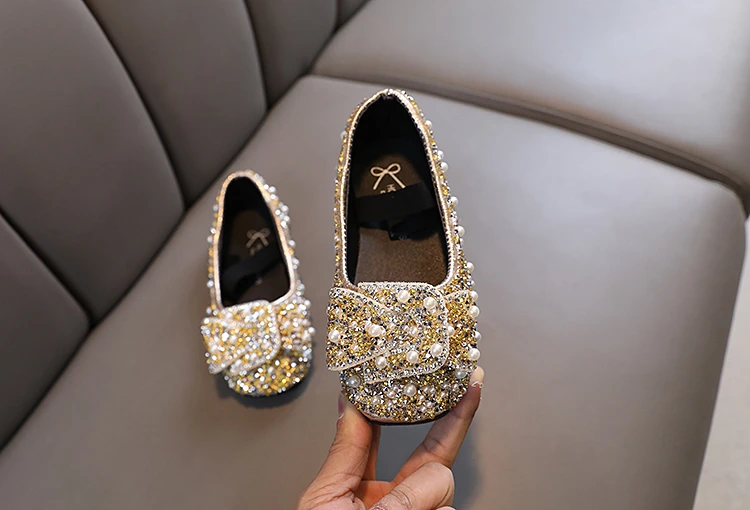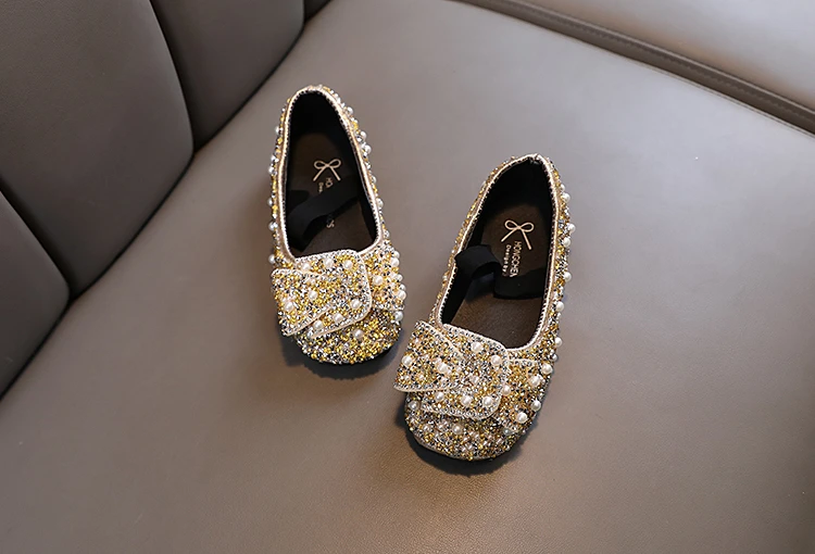 حذاء جديد بناتي مسطح مزود بفيونكة وحجر الراين للأطفال حذاء باللون الوردي الفاتح مطرز بالخرز 2023 حذاء فردي أحذية برنسيس ويند على الموضة