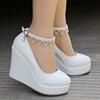 حذاء نسائي بكعب عالٍ بمقدمة دائرية ، حذاء نسائي بكعب ويدج 10.8 سنتيمتر ، حذاء مكتب عصري مثير