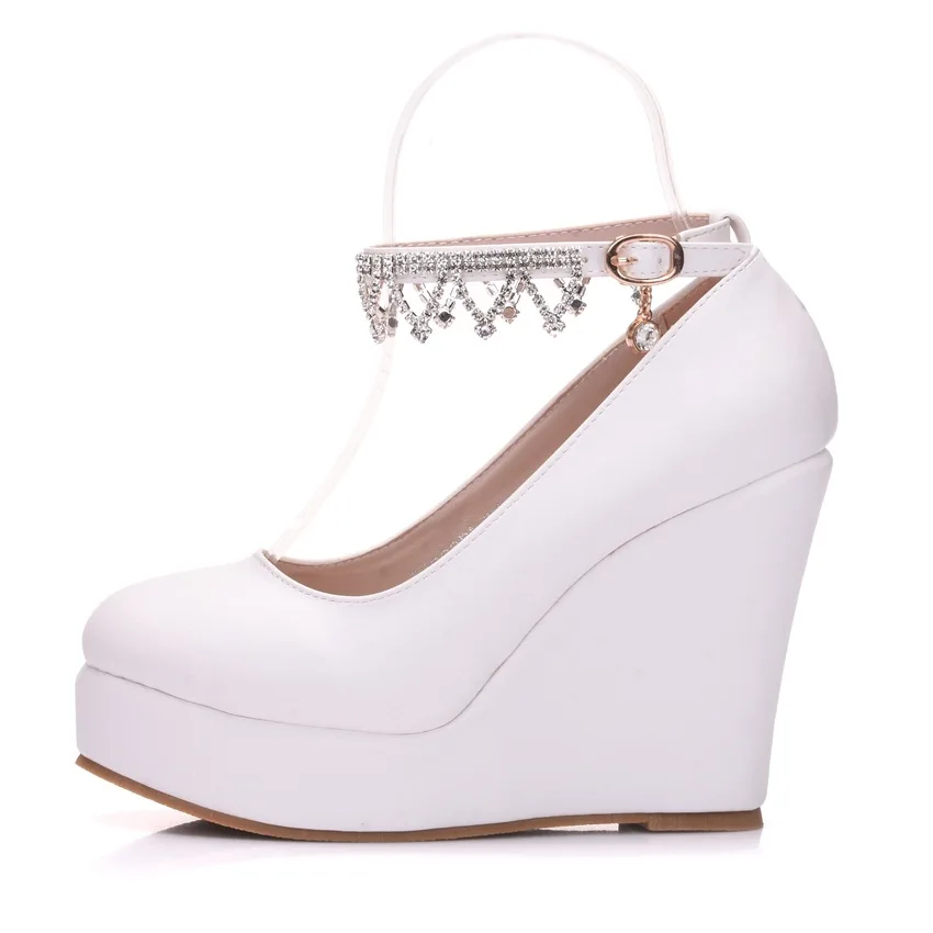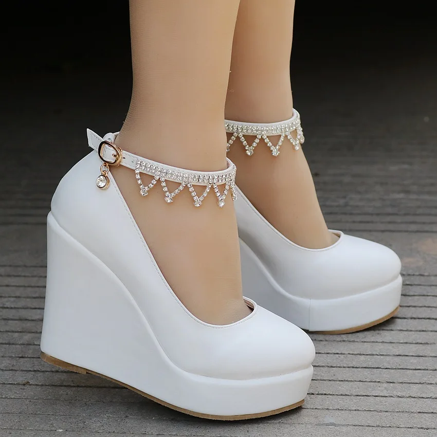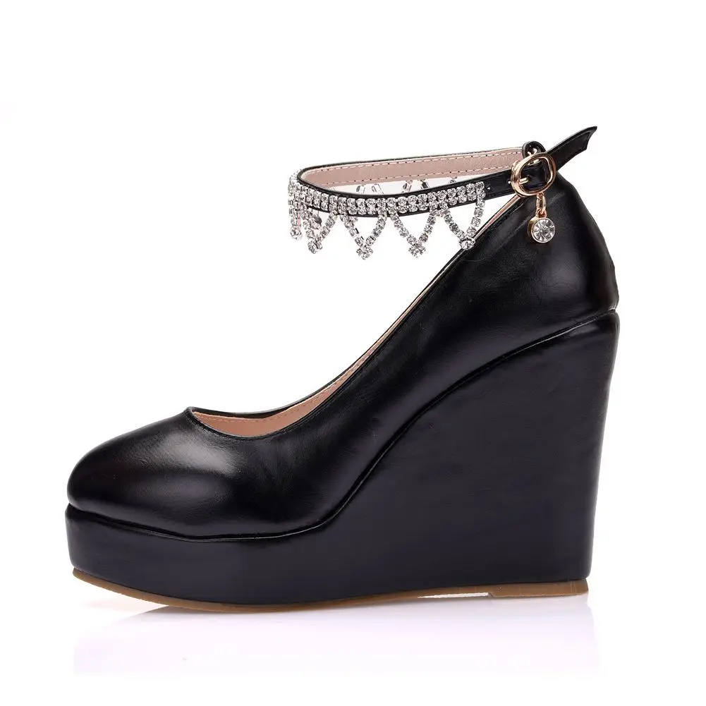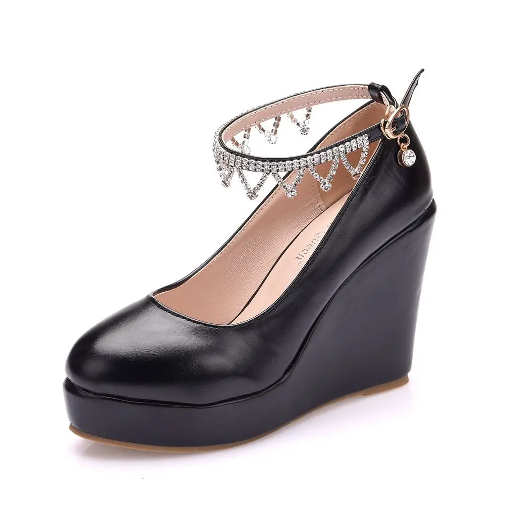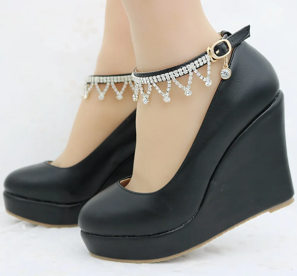 حذاء نسائي بكعب عالٍ بمقدمة دائرية ، حذاء نسائي بكعب ويدج 10.8 سنتيمتر ، حذاء مكتب عصري مثير