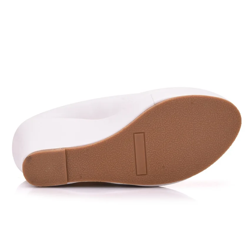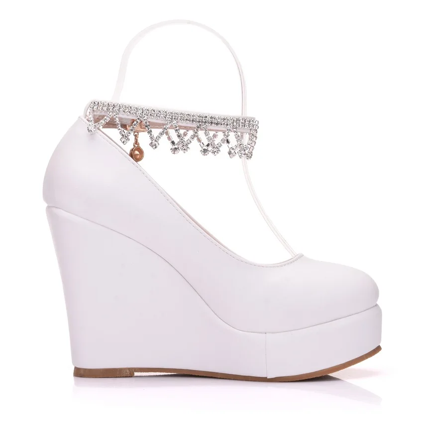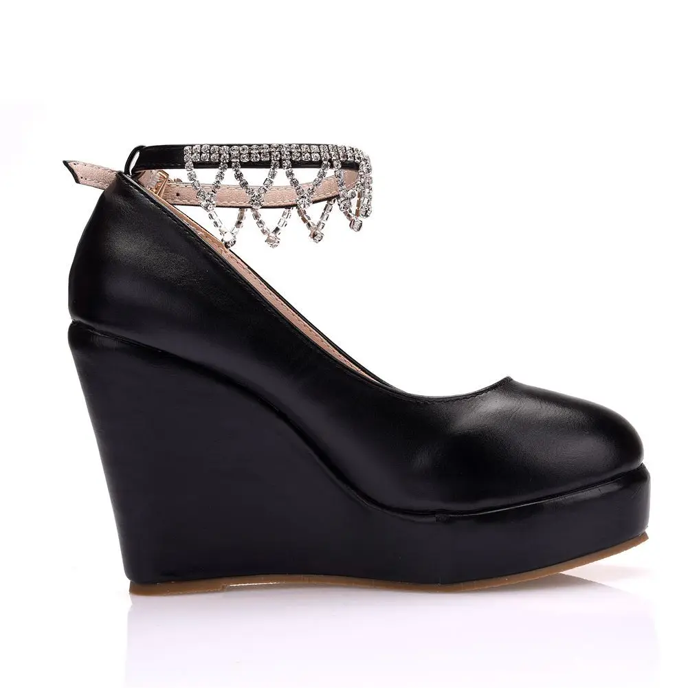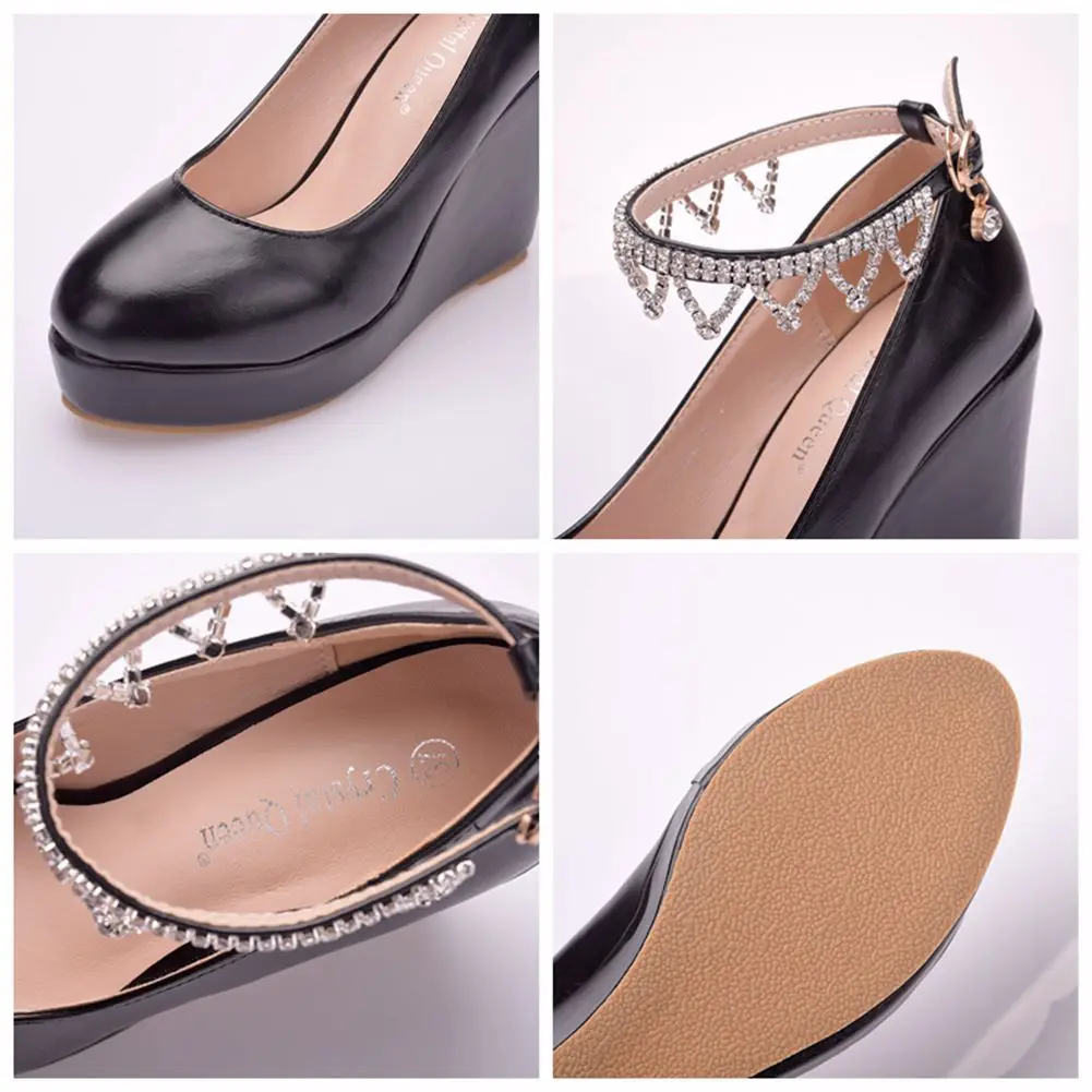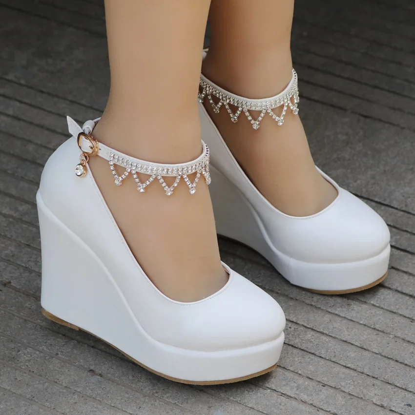 حذاء نسائي بكعب عالٍ بمقدمة دائرية ، حذاء نسائي بكعب ويدج 10.8 سنتيمتر ، حذاء مكتب عصري مثير