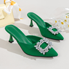 حذاء نسائي صيفي للعروس بكعب عالٍ فاخر من الكريستال ماركة 2023 حذاء مريح بكعب مثلث مناسب للحفلات والزفاف Sandalias De Tacon