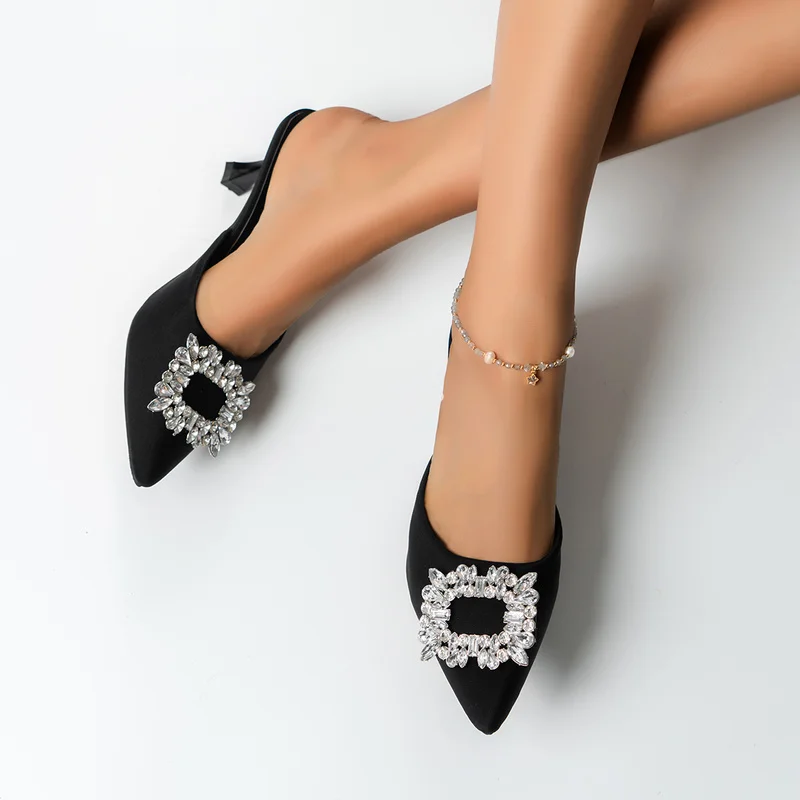 حذاء نسائي صيفي للعروس بكعب عالٍ فاخر من الكريستال ماركة 2023 حذاء مريح بكعب مثلث مناسب للحفلات والزفاف Sandalias De Tacon