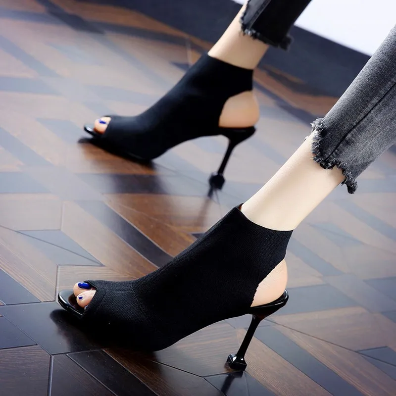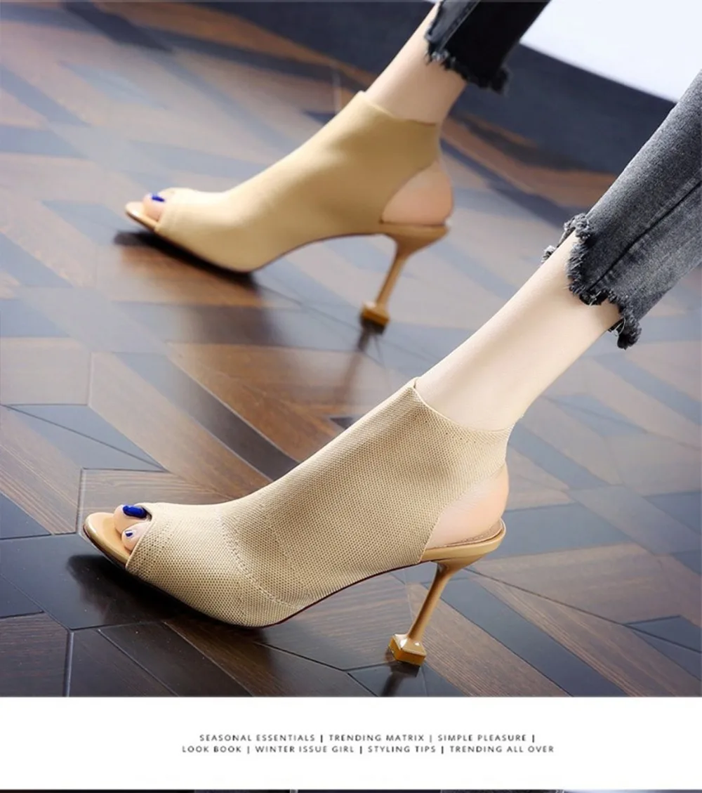 حذاء نسائي كلاسيكي بكعب عالٍ 8 سنتيمتر ، روماني ، مفتوح عند الأصابع ، رائع ، حذاء زفاف مثير