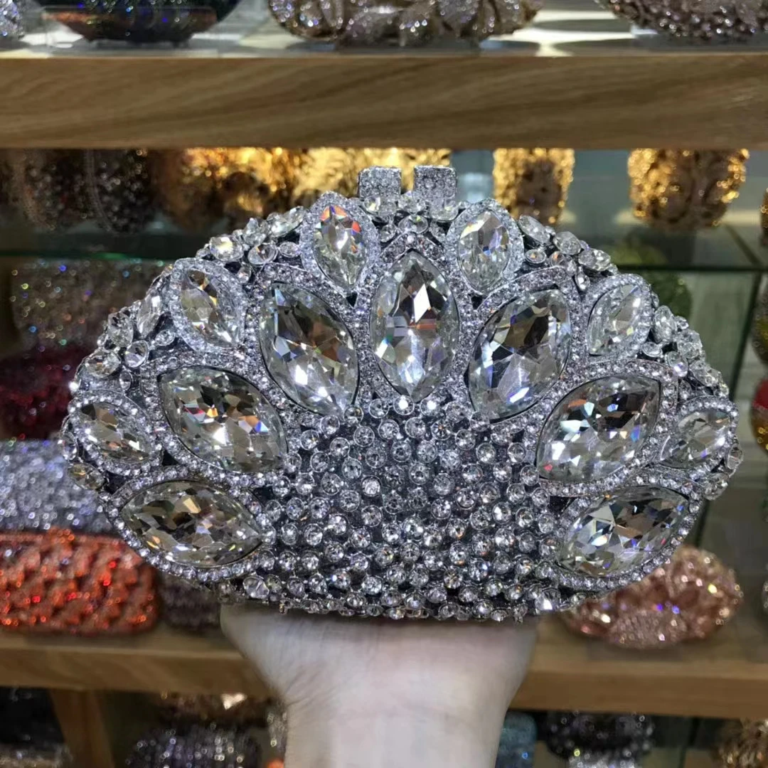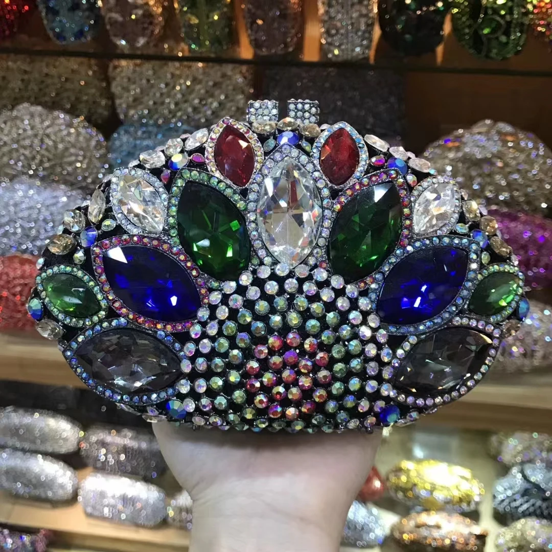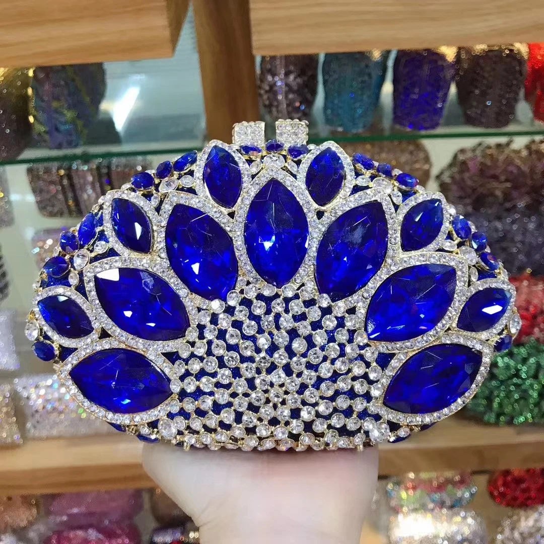 حقائب يد نسائية باللون الأزرق الداكن حقائب يد من الكريستال مساء غطاء واقٍ مزخرف لهاتف آيفون معدني من حجر الراين