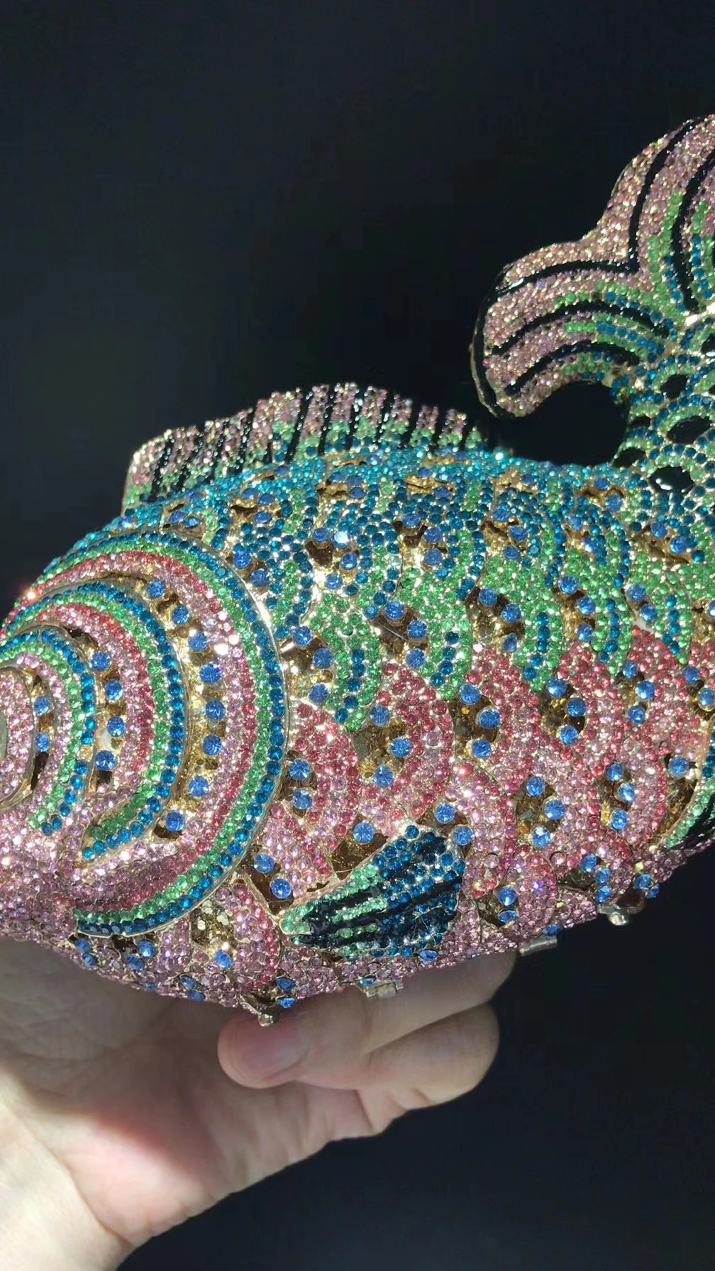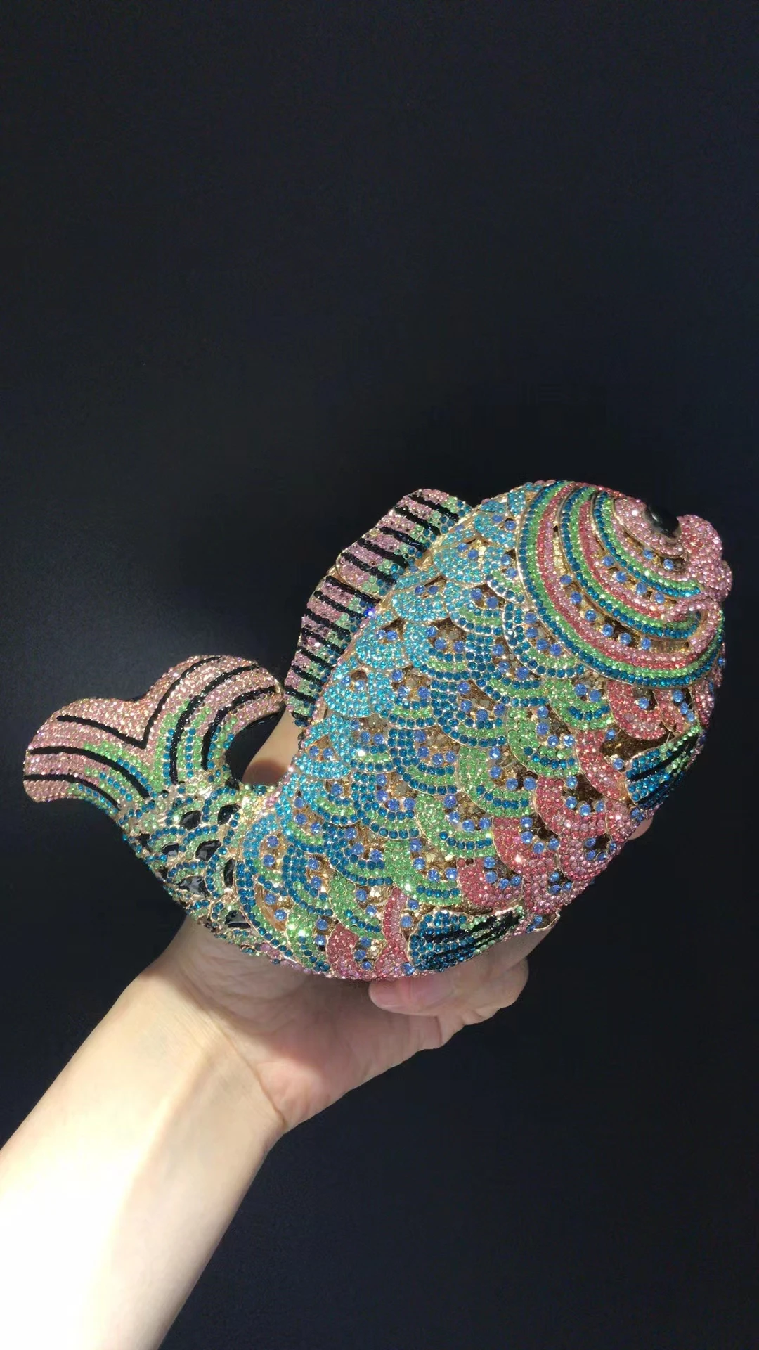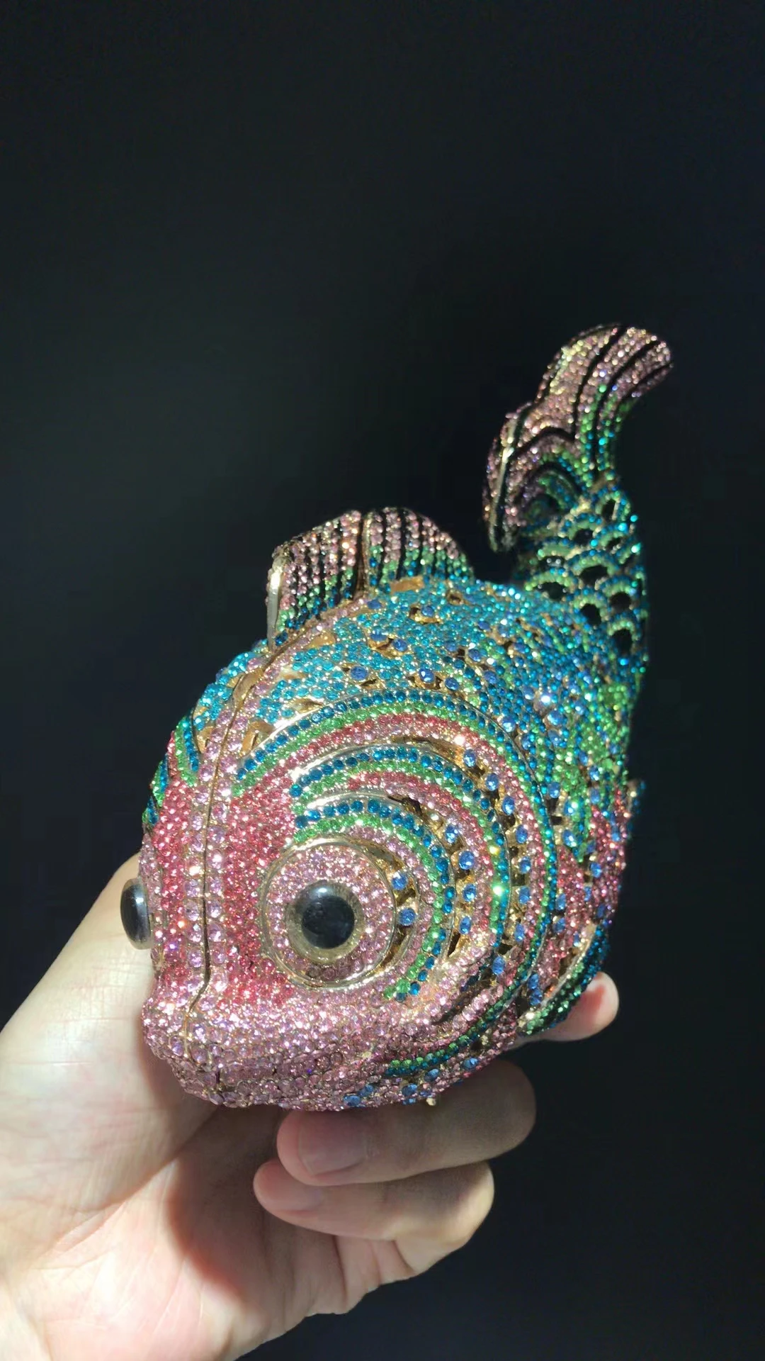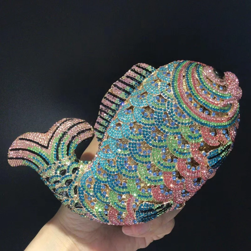 حقيبة مسائية نسائية فاخرة على شكل سمكة من الكريستال حقيبة يد نسائية على شكل حجر الراين محفظة براثن ماسية حقائب هدية للحفلات والولائم