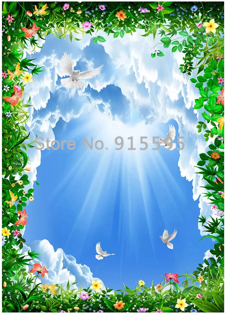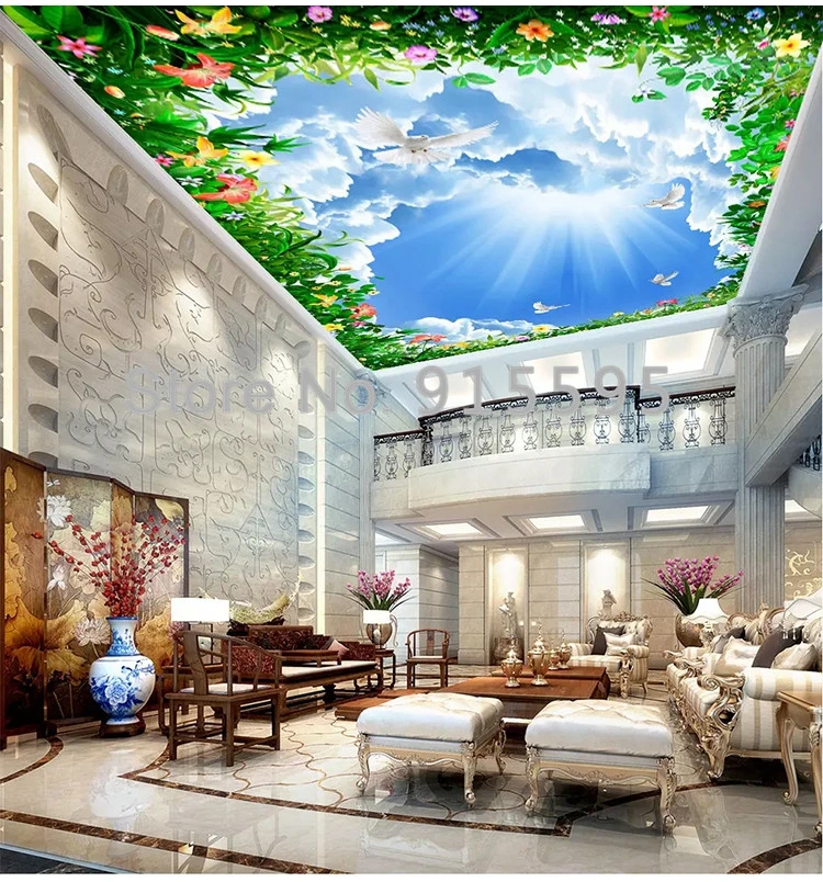 خلفية صور ثلاثية الأبعاد مخصصة ، خلفية زرقاء ، غيوم بيضاء ، سقف كرمة ، غرفة معيشة ، غرفة نوم ، زخرفة جدارية ، لوحة جدارية