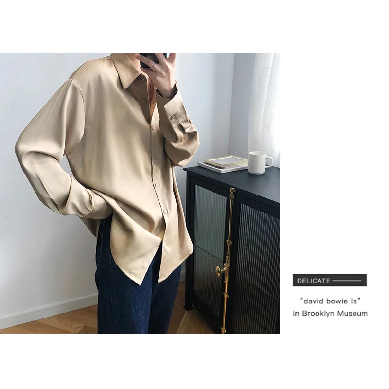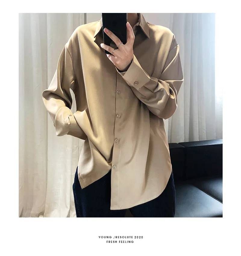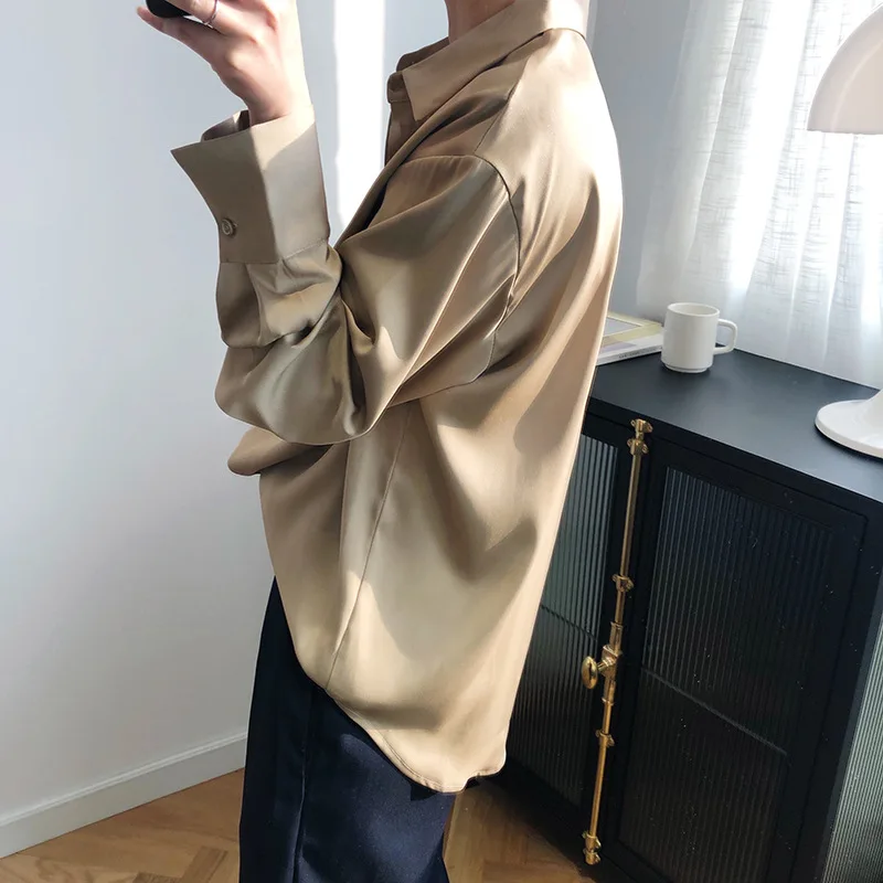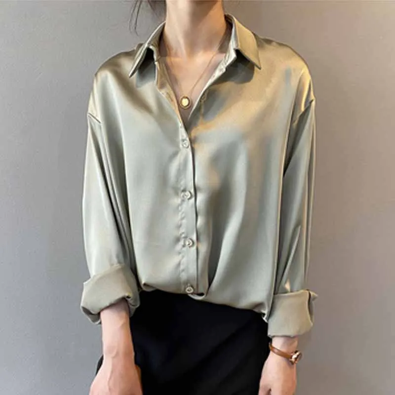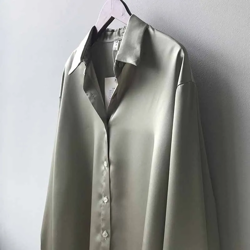 خمر أنيقة مكتب السيدات الصلبة الحرير قمصان 2020 أزياء المرأة البلوزات جديد طويل الأكمام رفض طوق فضفاض قمم 12534
