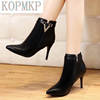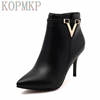 رائجة البيع الخريف خنجر رقيقة عالية الكعب سستة نمط مثير المرأة أحذية بوتا الأنثوية أشار تو فو الجلود الأحمر حذاء بوت بطول الكاحل