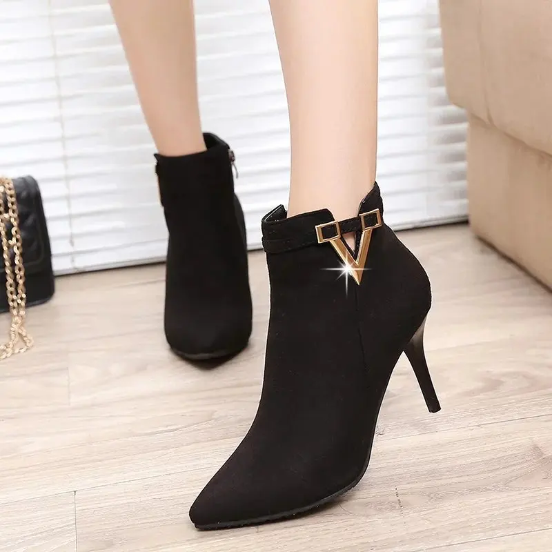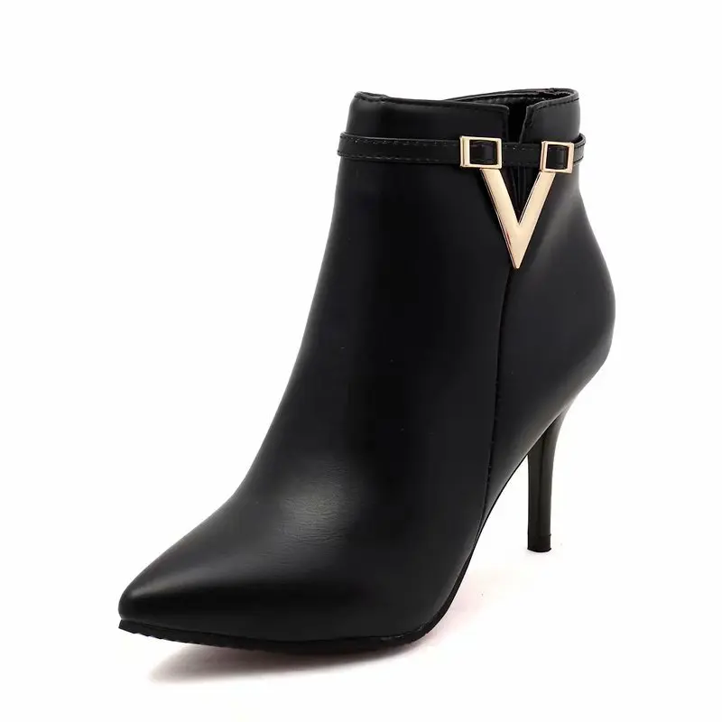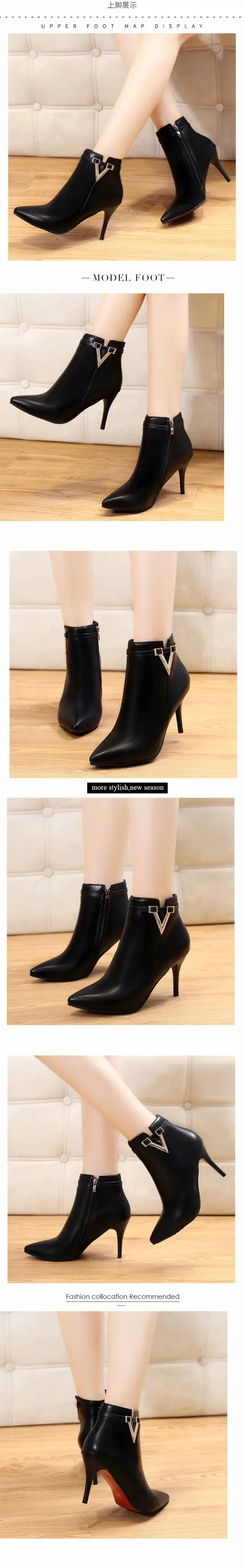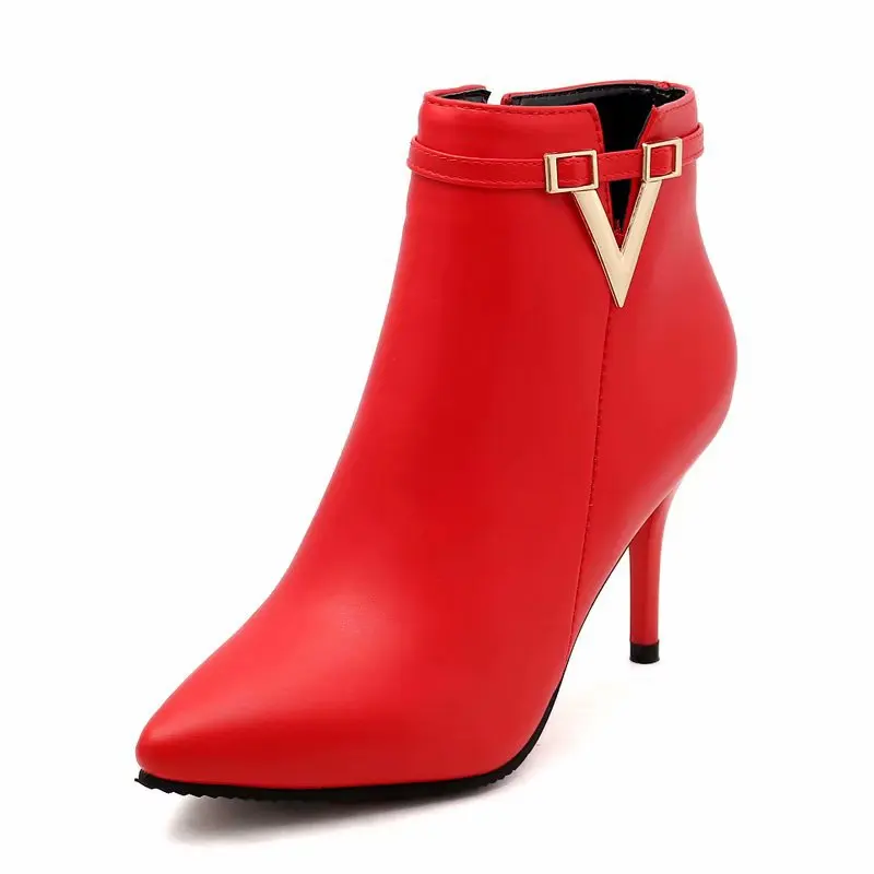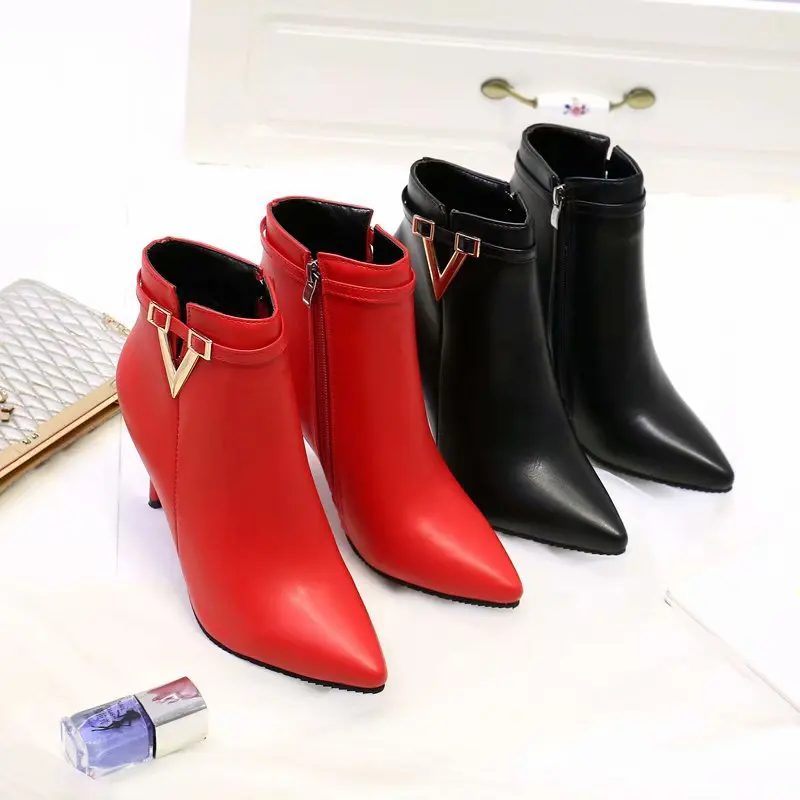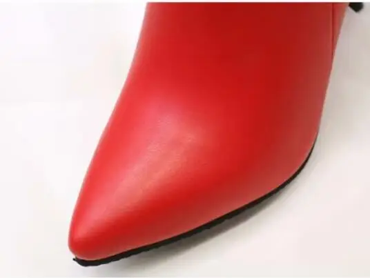 رائجة البيع الخريف خنجر رقيقة عالية الكعب سستة نمط مثير المرأة أحذية بوتا الأنثوية أشار تو فو الجلود الأحمر حذاء بوت بطول الكاحل
