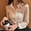 ربيع الدانتيل قاع قميص 2022 موضة جديدة أنيقة الأزهار التطريز بلوزة بيضاء المرأة طويلة الأكمام التلبيب الكورية الجوف الأعلى 13125