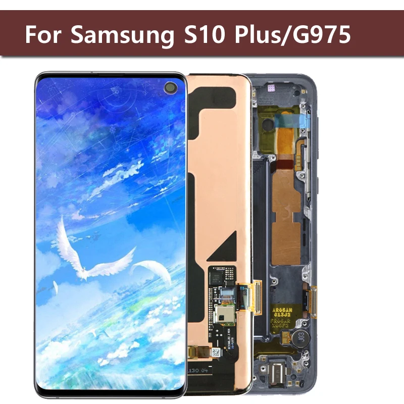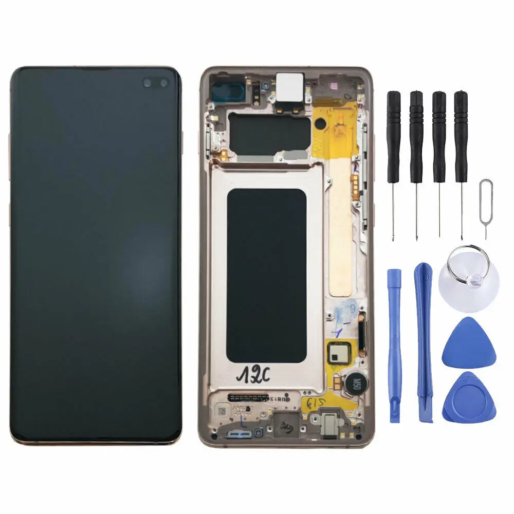شاشة LCD أصلية SUPER AMOLED, شاشة LCD أصلية SUPER AMOLED مقاس 6.4 بوصة مع إطار لاستبدال شاشة SAMSUNG Galaxy S10 plus G9750 LCD تعمل باللمس