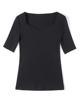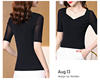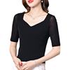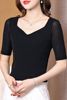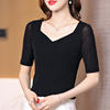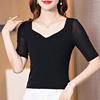 شبكة نصف كم تي شيرت المرأة الربيع الصيف الأسود تي شيرت الخامس الرقبة بلايز فام بسط تي شيرت