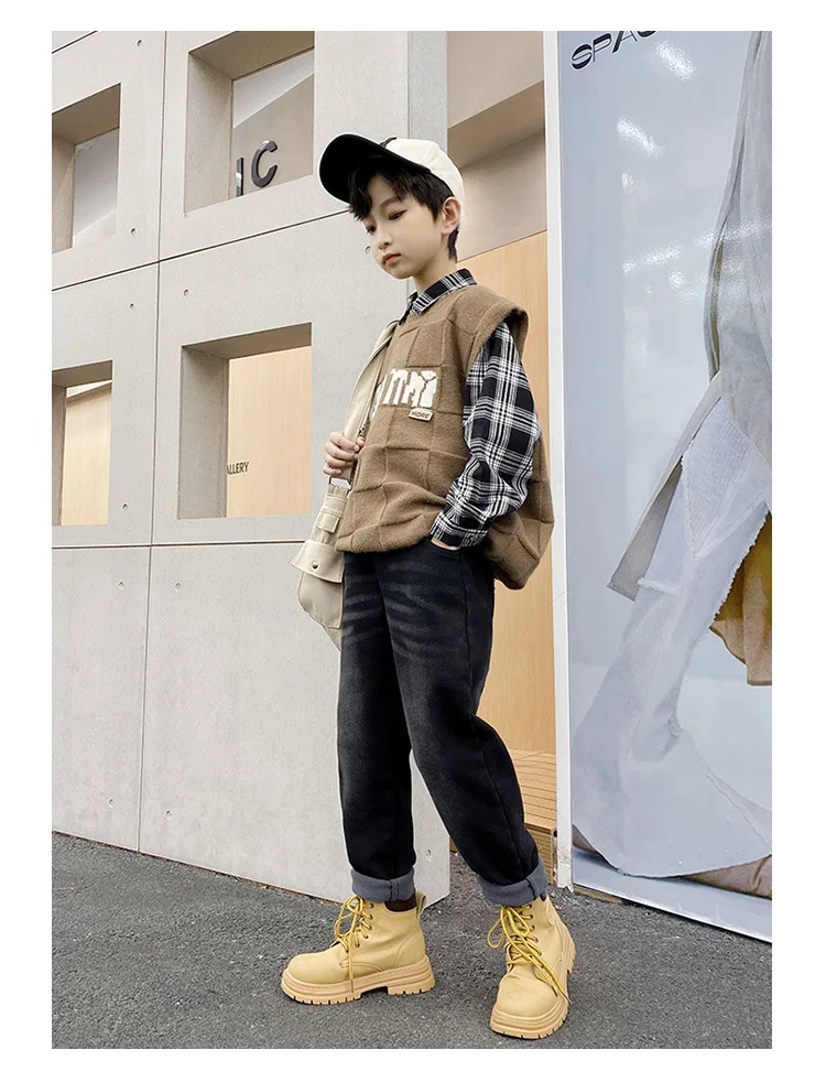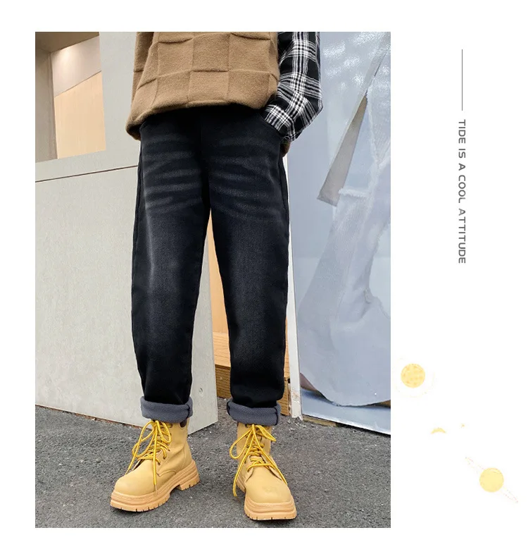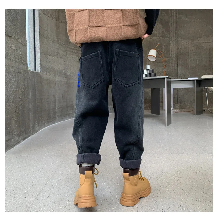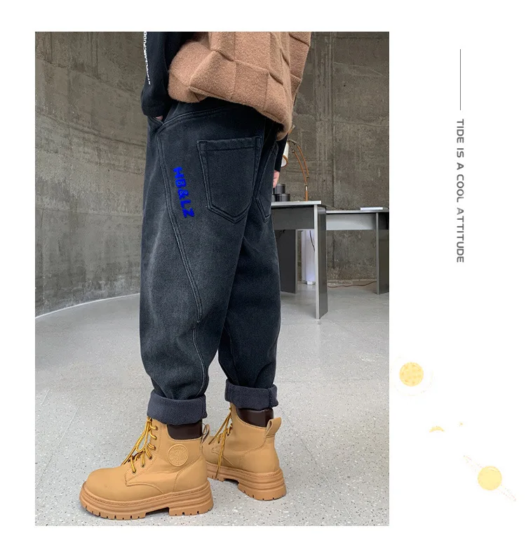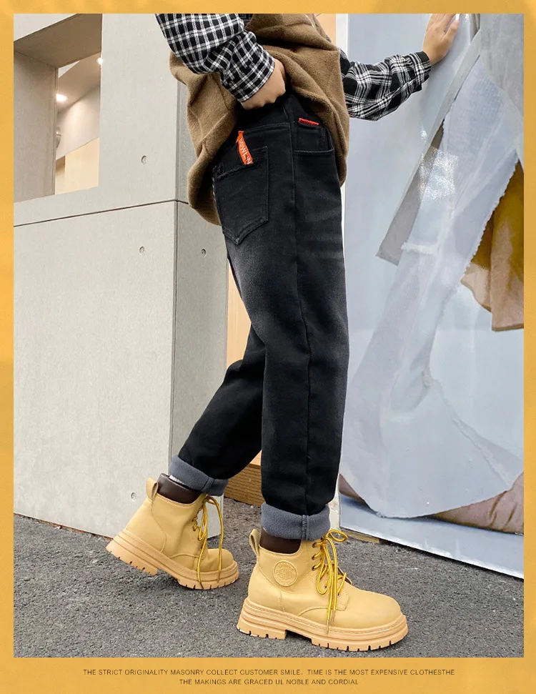 شتاء دافئ بنطلون بنين القطن الأطفال الصوف إضافة الصوف الدنيم السراويل موضة المراهقين بلون الجينز البضائع بانت 4 8 14 سنوات