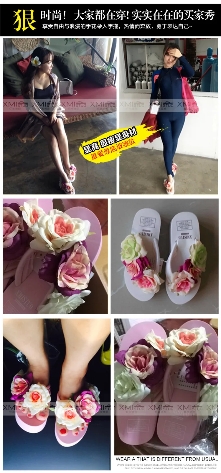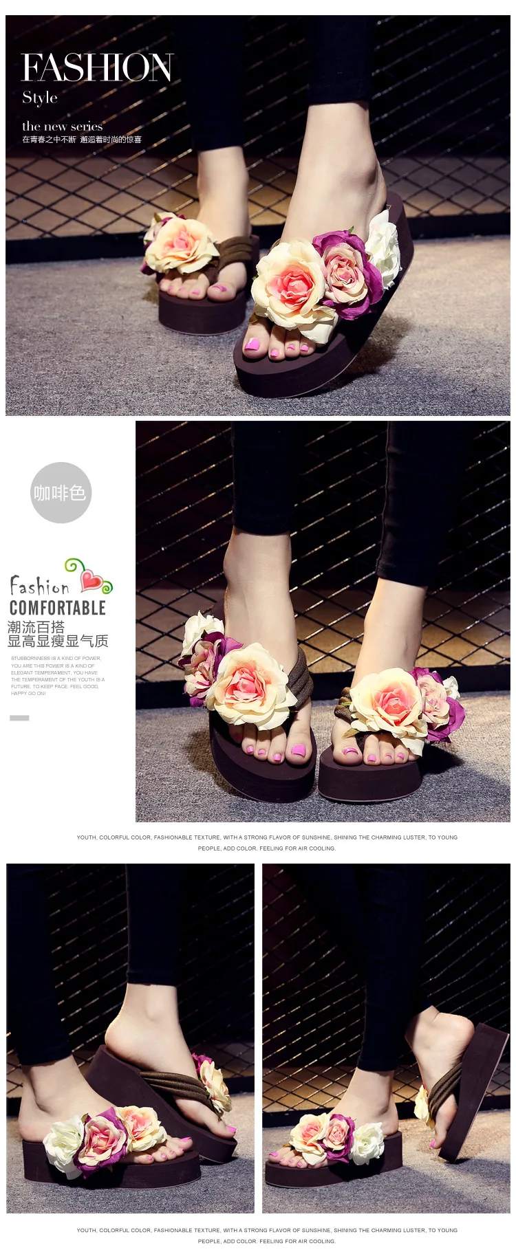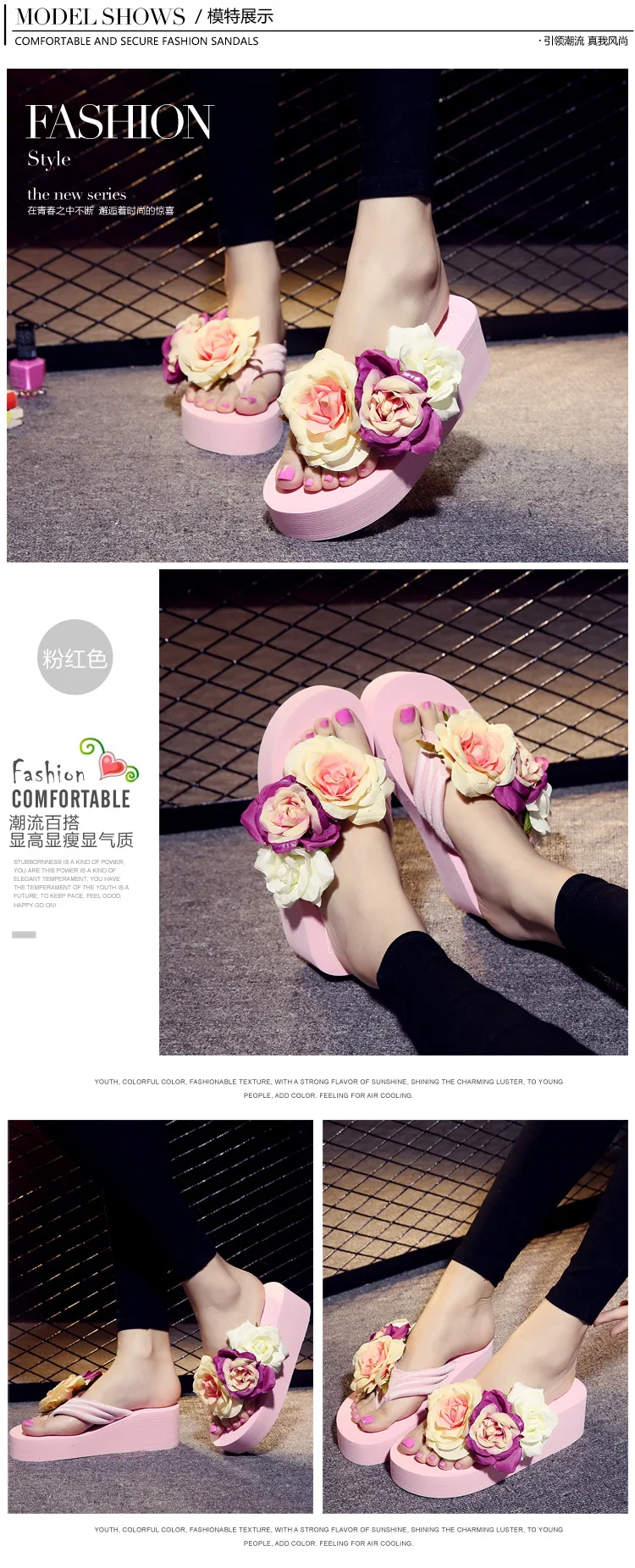 صندل نسائي بكعب عالٍ ، حذاء بكعب عالي ، وردي ، ثلاثة أزهار ، شخصية بشري ، مافن ، مانع للانزلاق ، شبشب شاطئ ، شبشب