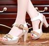 صندل نسائي بكعب عالٍ بإبزيم ، حذاء صيفي بإبزيم ، بمقدمة مفتوحة ، للحفلات ، والزفاف ، والمهرجانات ، والحفلات
