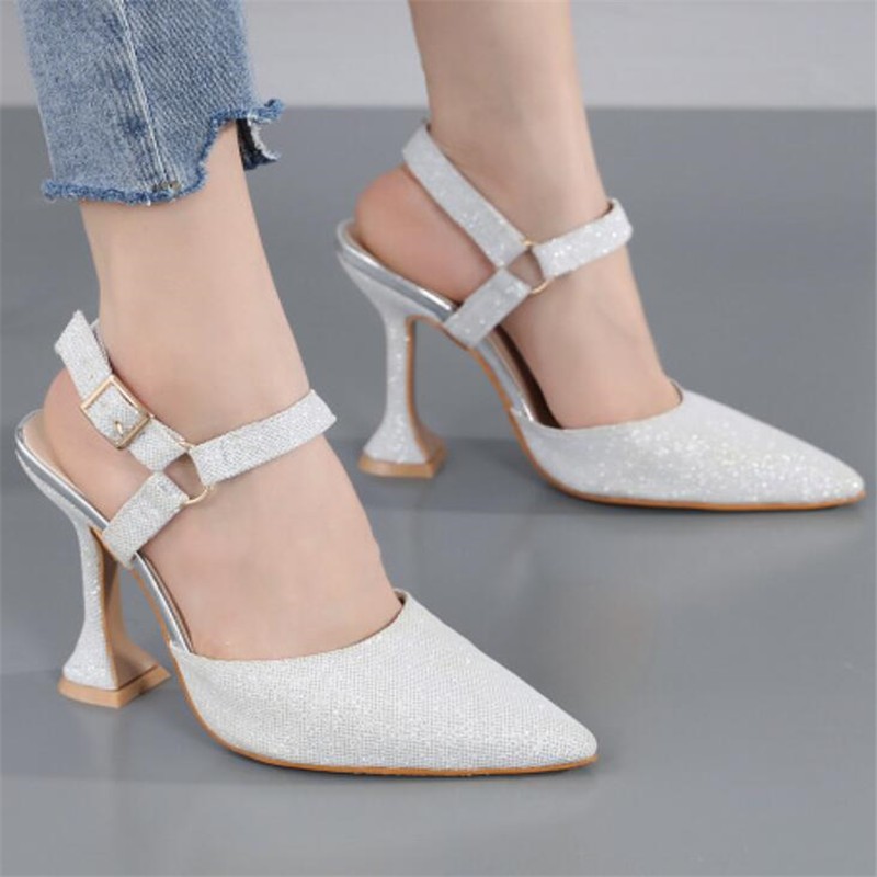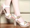 صندل نسائي بكعب عالٍ بإبزيم ، حذاء صيفي بإبزيم ، بمقدمة مفتوحة ، للحفلات ، والزفاف ، والمهرجانات ، والحفلات