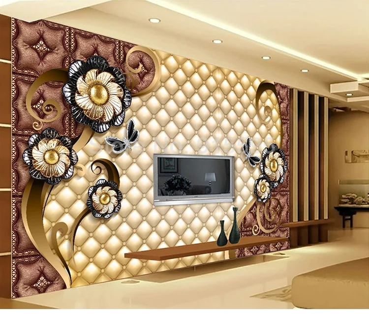 صورة جدارية مخصصة ، مجوهرات سوداء فاخرة ، زهور ، حقيبة ناعمة ، خلفية تلفزيون ، لوحة جدارية ، غرفة معيشة ، غرفة نوم ، ورق حائط منقوش ثلاثي الأبعاد
