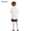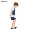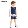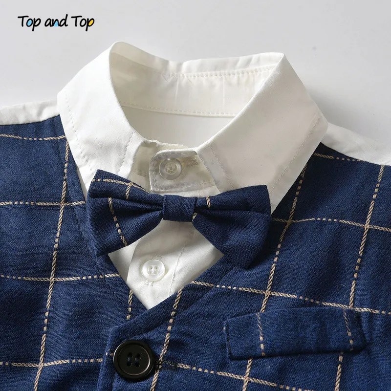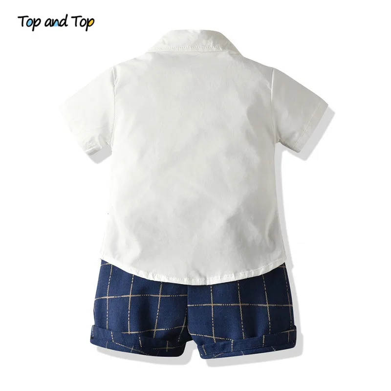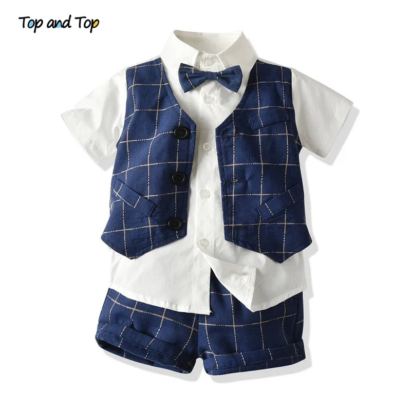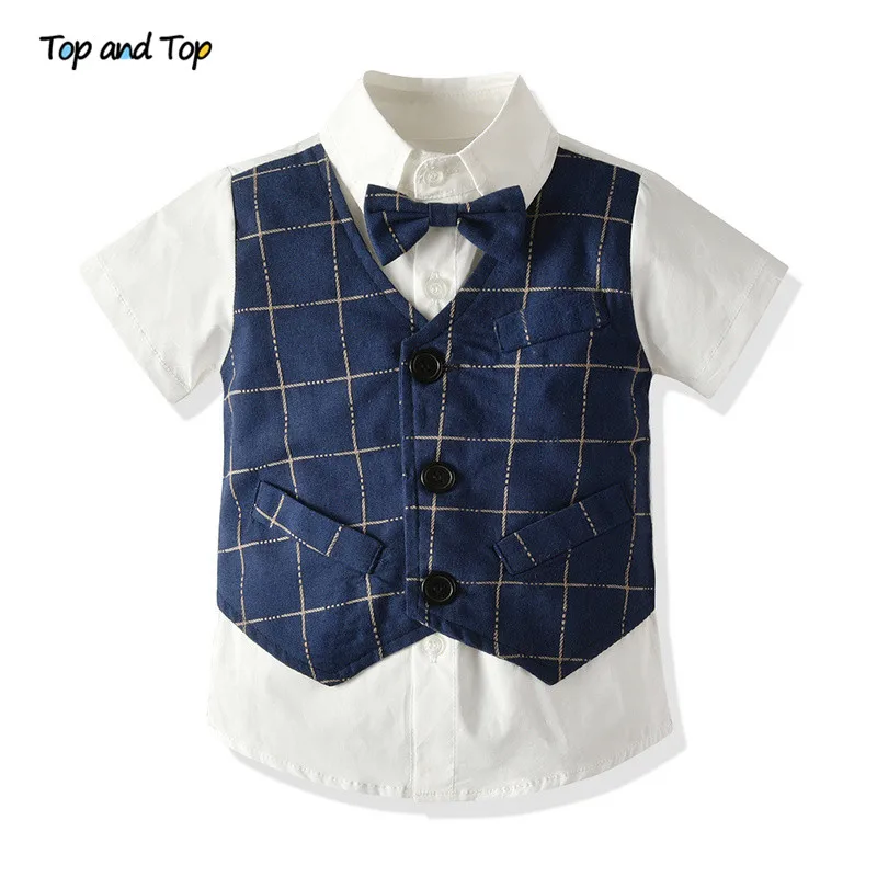 طقم ملابس صيفي للأولاد الصغار مكون من بلوزة وقميص بأكمام قصيرة مزيف مع ربطة عنق + شورت مخطط بدلة رجالية للأطفال بذلة سهرة