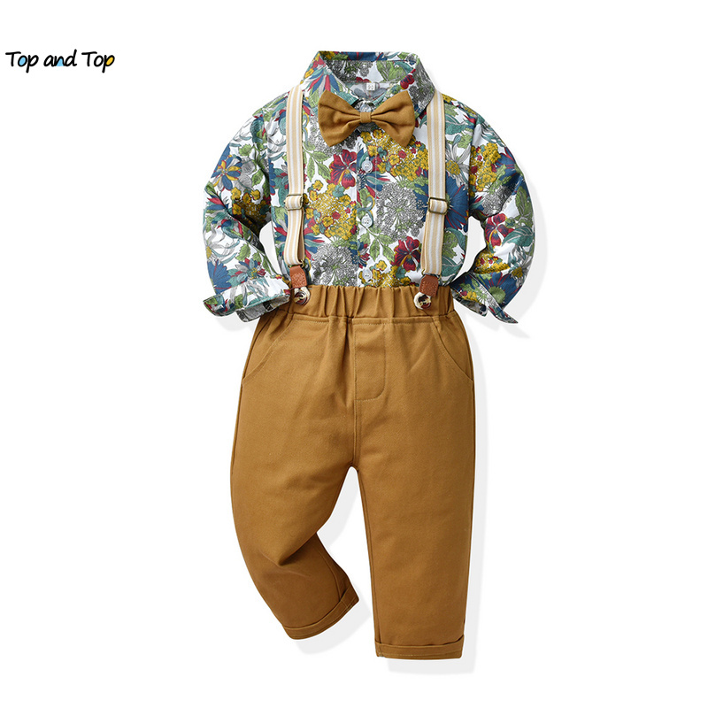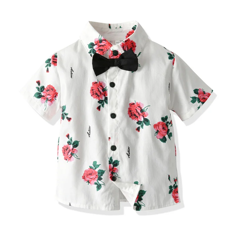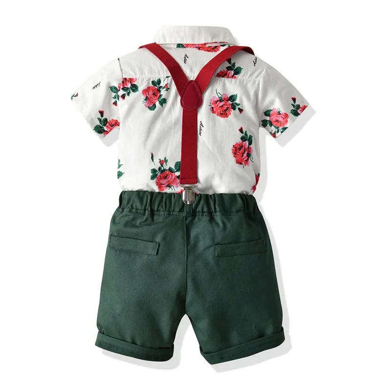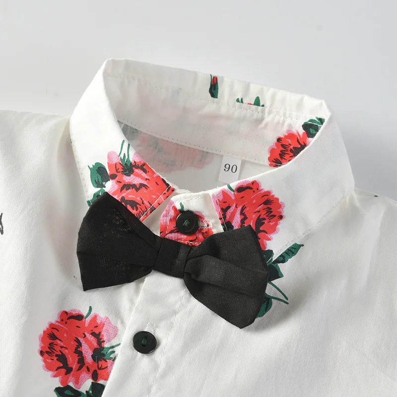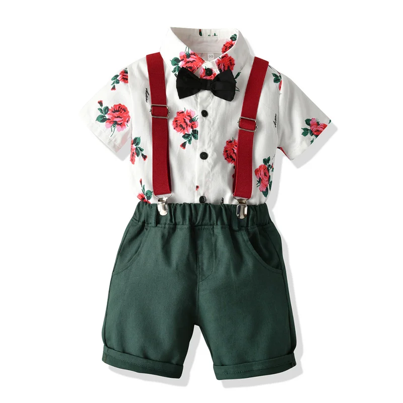 طقم ملابس غير رسمية للأولاد من Chidlren قميص بووتي مطبوع بأكمام قصيرة + حمالات شورت يناسب الأولاد ملابس رجالية