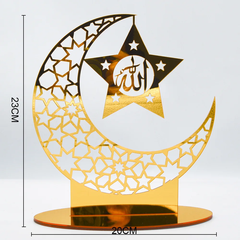 عيد مبارك الاكريليك زخرفة رمضان كريم الديكور للمنزل الإسلامية مسلم لوازم الحفلات القمر الذهبي ديكور عيد الأضحى هدية