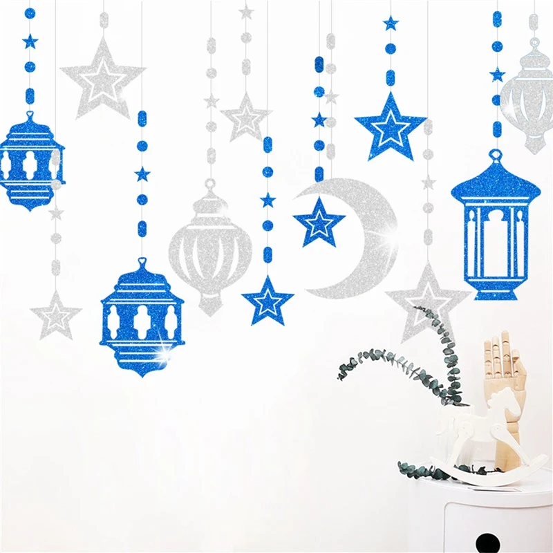 عيد مبارك القمر ستار الجدار الشنق جارلاند العلم قلادة رمضان الديكور للمنزل عيد الأضحى الإسلام مسلم لوازم الحفلات