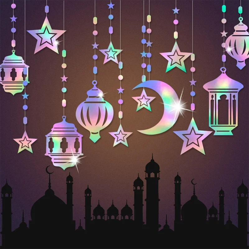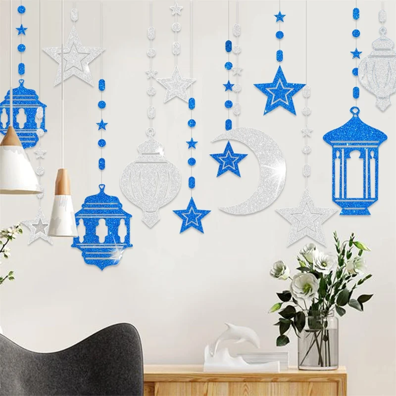 عيد مبارك القمر ستار الجدار الشنق جارلاند العلم قلادة رمضان الديكور للمنزل عيد الأضحى الإسلام مسلم لوازم الحفلات