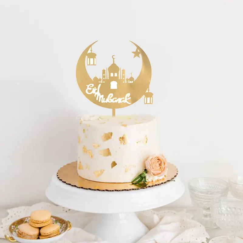 عيد مبارك ديكور كعكة توبر رمضان كريم الذهبي أكريليك قلعة القمر قطاعات الكيك 2022 رمضان مبارك كعكة الزينة