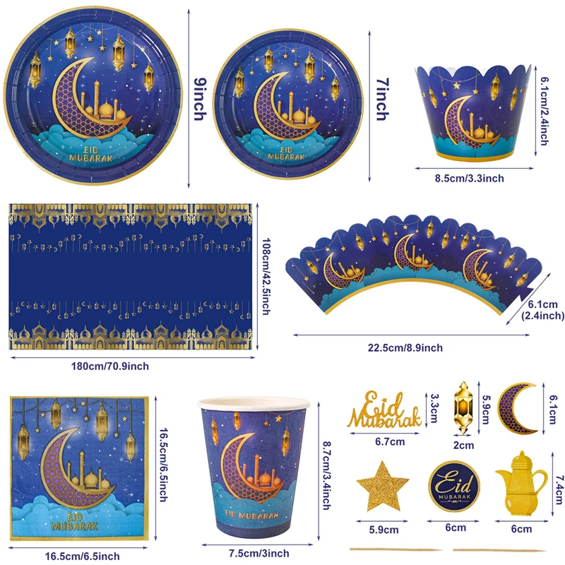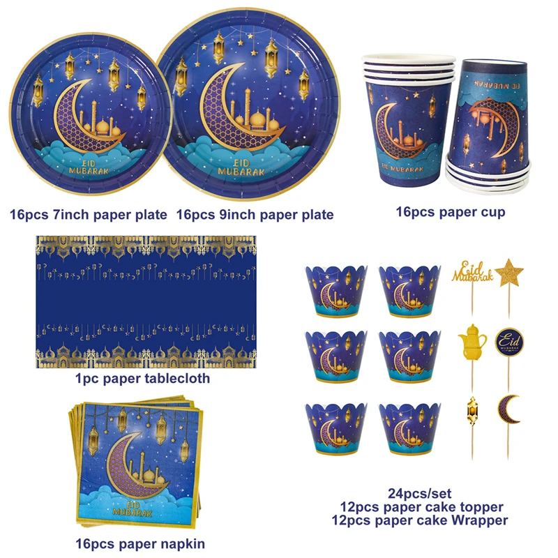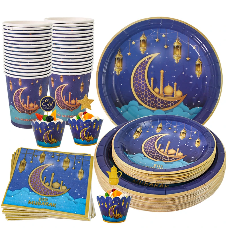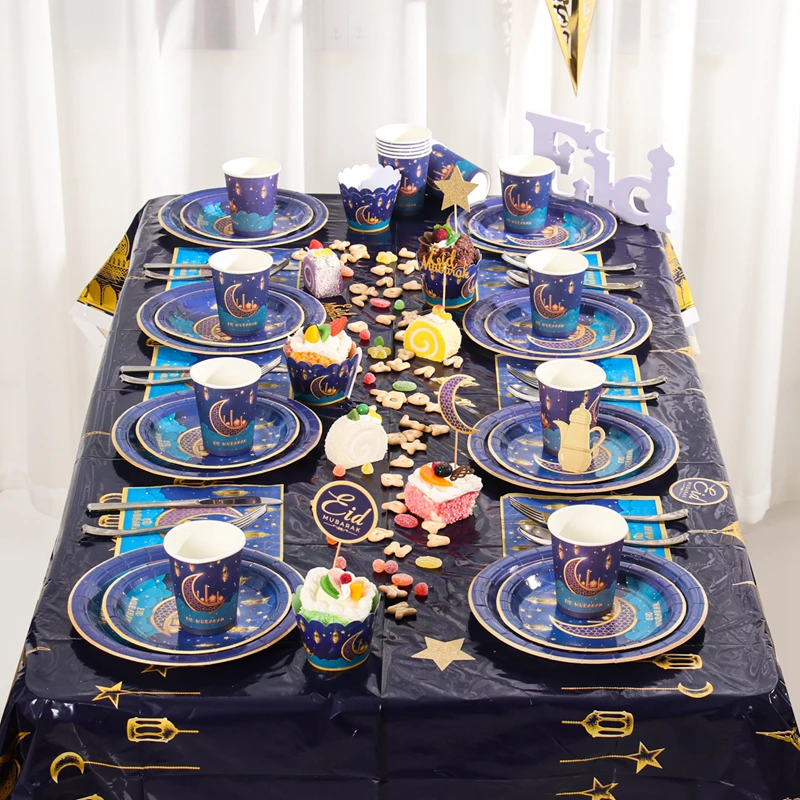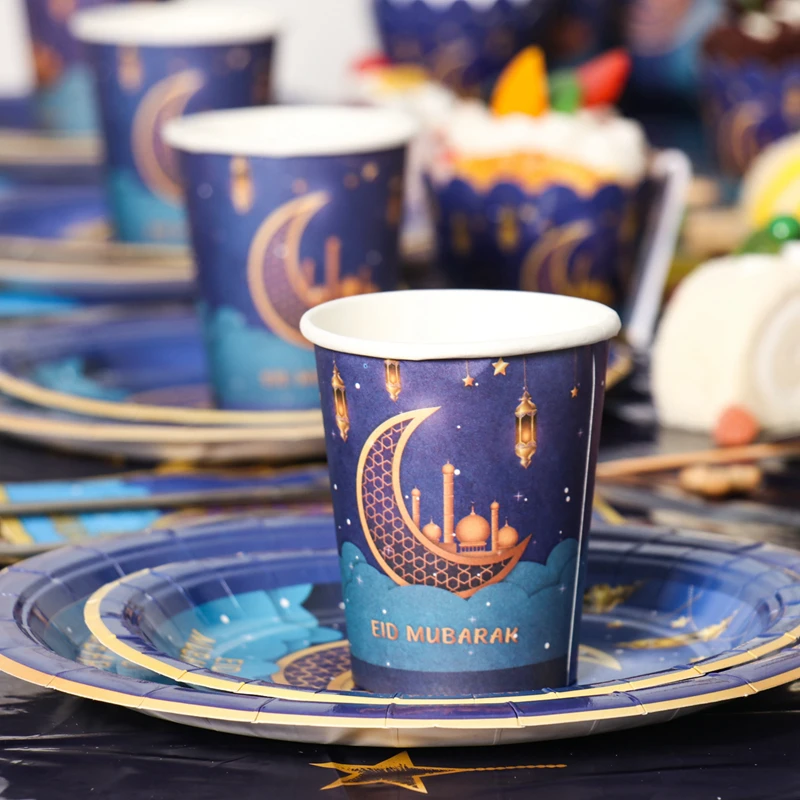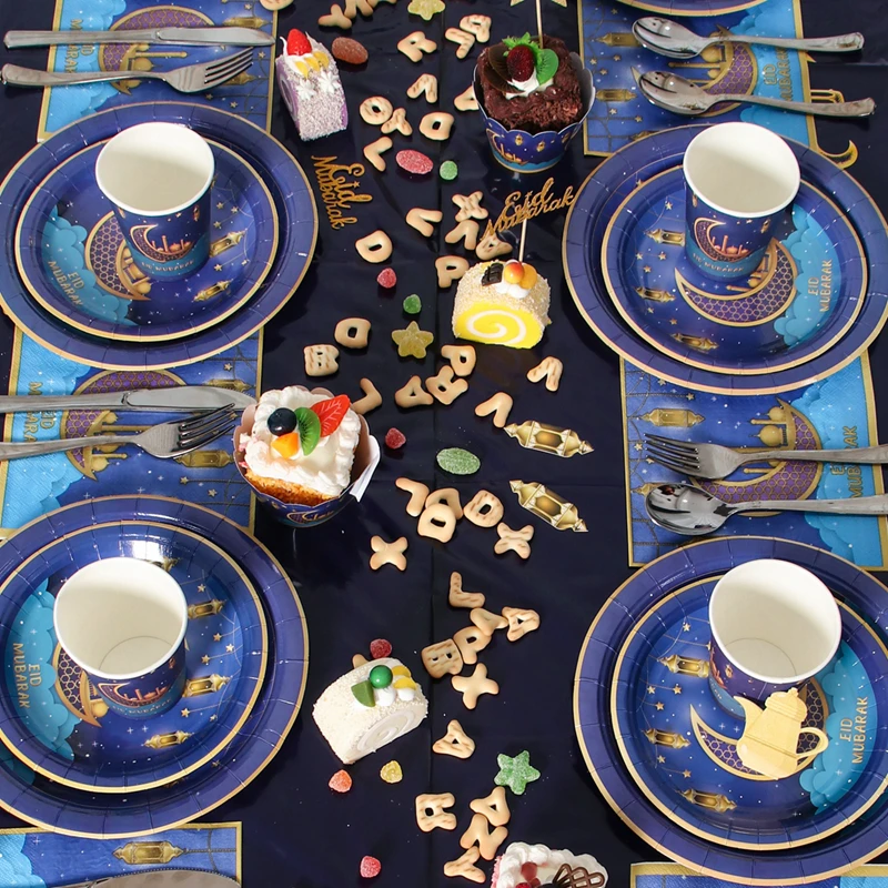 عيد مبارك لوازم الطاولة/المائدة قابل للتصرف مجموعة كأس لوحة رمضان الديكور رمضان كريم مسلم حفلة إسلامية ديكور عيد الأضحى هدايا