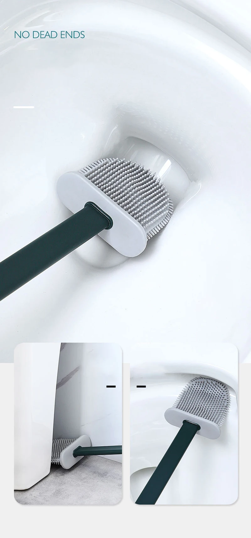 6. [زوايا ميتة نظيفة]: فرشاة المرحاض ليست قوية فقط ، ولكن أيضا أكثر صرامة. يمكن لرأس الفرشاة القابل للانحناء تنظيف جميع المناطق داخل المرحاض ، وخاصة الأخاديد.