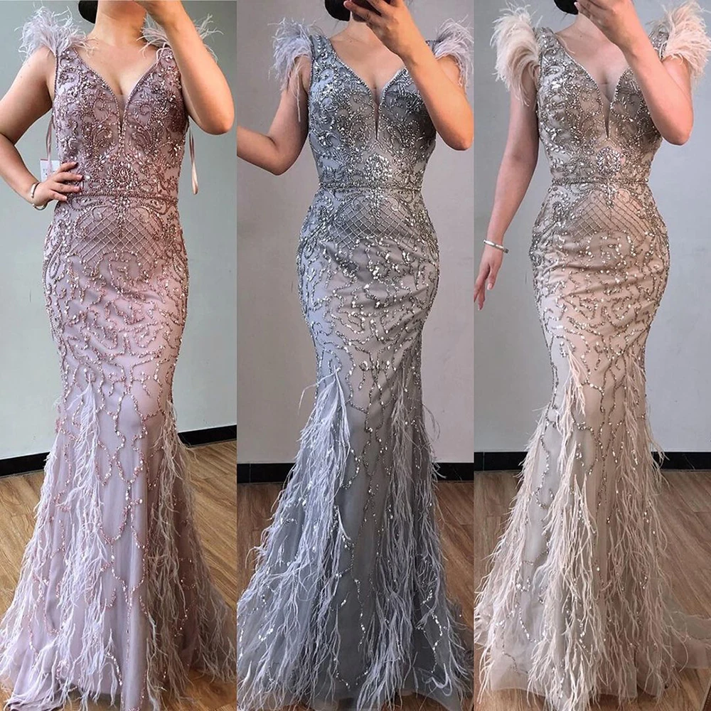 فساتين سهرة أنيقة بحورية البحر من Serene Hill فساتين سهرة أنيقة 2023 ريشة مطرزة فاخرة مثيرة للنساء LA70572