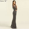 فساتين سهرة جديدة 2023 نصف كم أنيقة فساتين سهرة رسمية Serene Hill LA6559 رمادي حورية البحر شرابة مطرز بالخرز