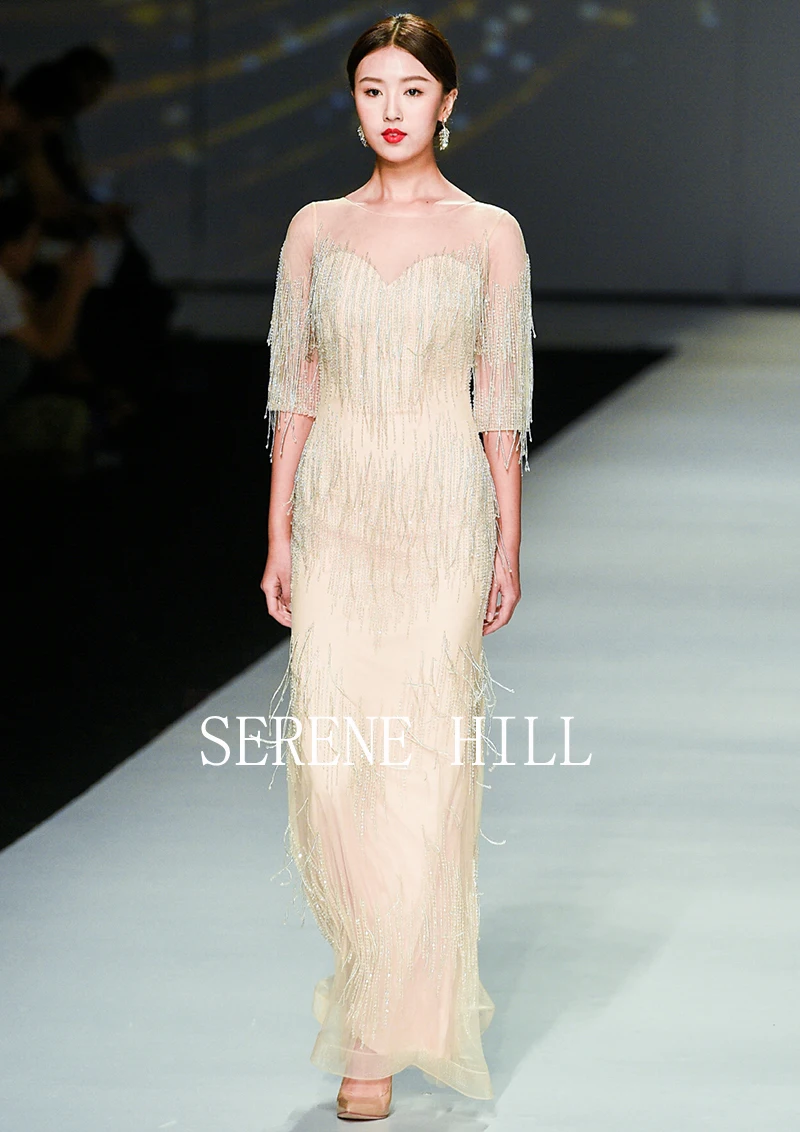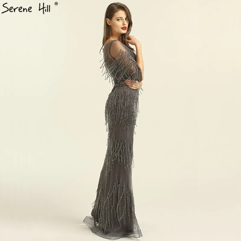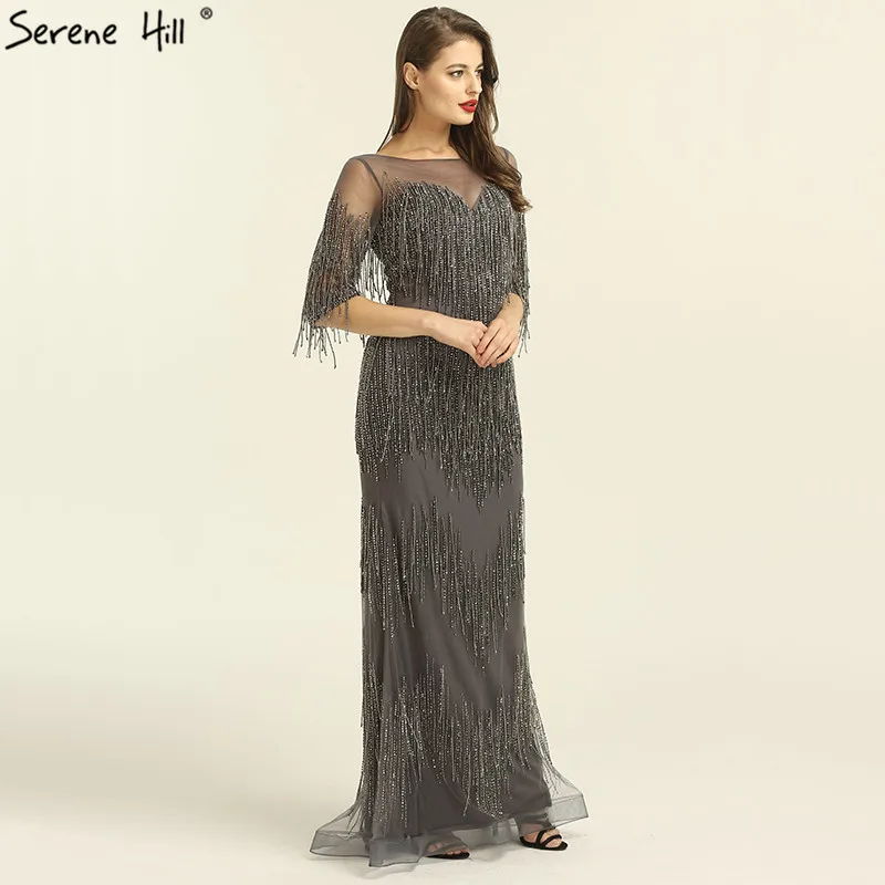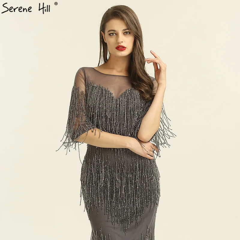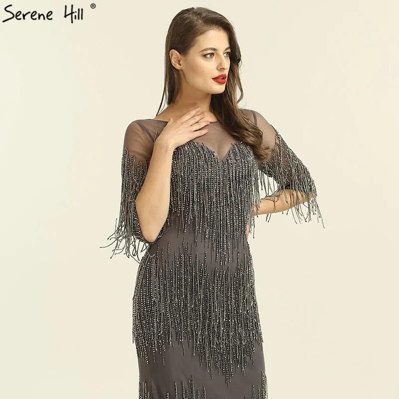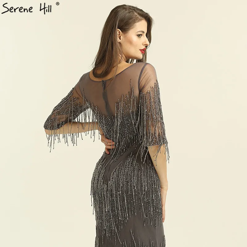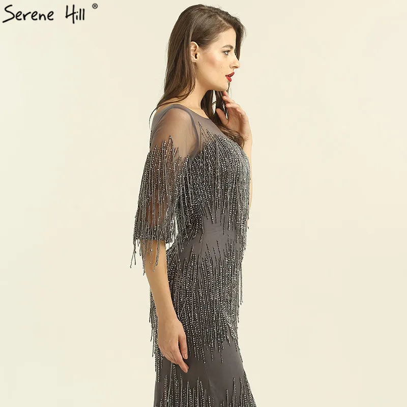 فساتين سهرة جديدة 2023 نصف كم أنيقة فساتين سهرة رسمية Serene Hill LA6559 رمادي حورية البحر شرابة مطرز بالخرز