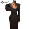 فساتين سهرة سوداء من Lowime 2021 طويلة الأكمام قماش هندي من الدانتيل مُطرز بالزهور فستان لحفلات الزفاف رداء De Soirée De Mariage حورية البحر فستان حفلات