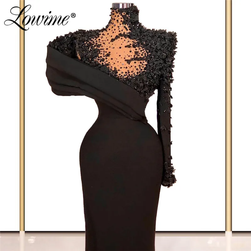 فساتين سهرة سوداء من Lowime 2021 طويلة الأكمام قماش هندي من الدانتيل مُطرز بالزهور فستان لحفلات الزفاف رداء De Soirée De Mariage حورية البحر فستان حفلات