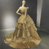 فساتين سهرة فاخرة للنساء من Serene Hill باللون الذهبي على شكل حرف a وكشكشة على شكل حرف a ورقبة صدفية لعام 2023 ، موضة LA71753
