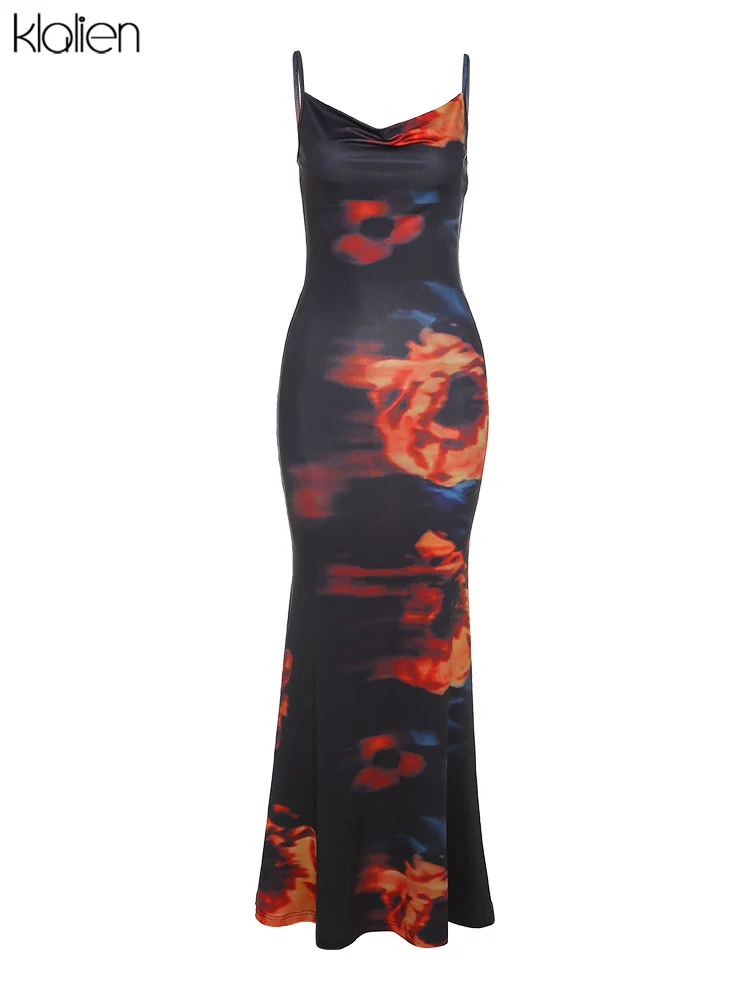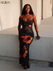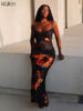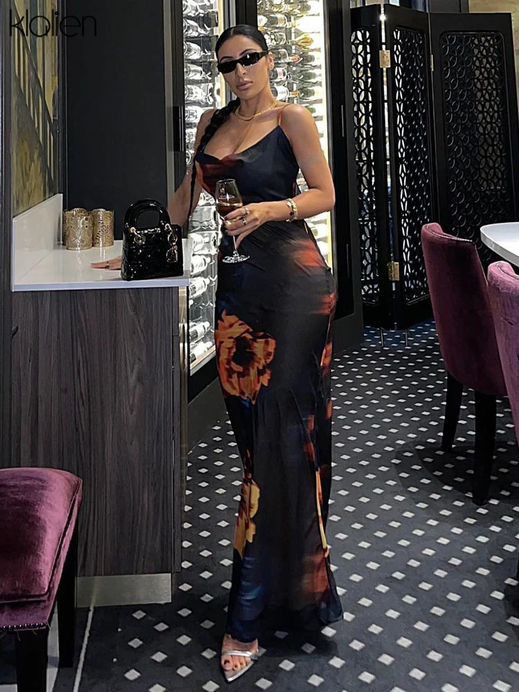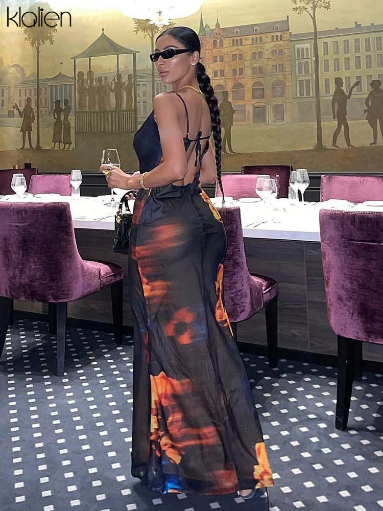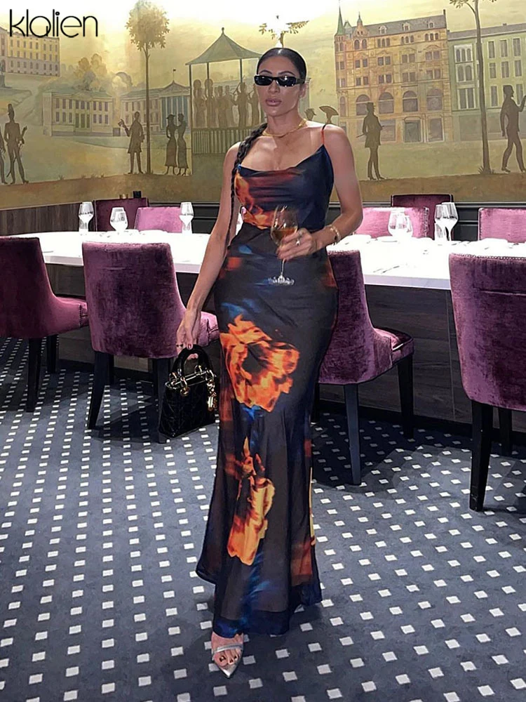 فساتين طويلة بحزام وياقة مائل وطباعة جذابة على الموضة من klالغريبة للنساء 2021 فساتين طويلة لحفلات الإجازات والشاطئ للنساء