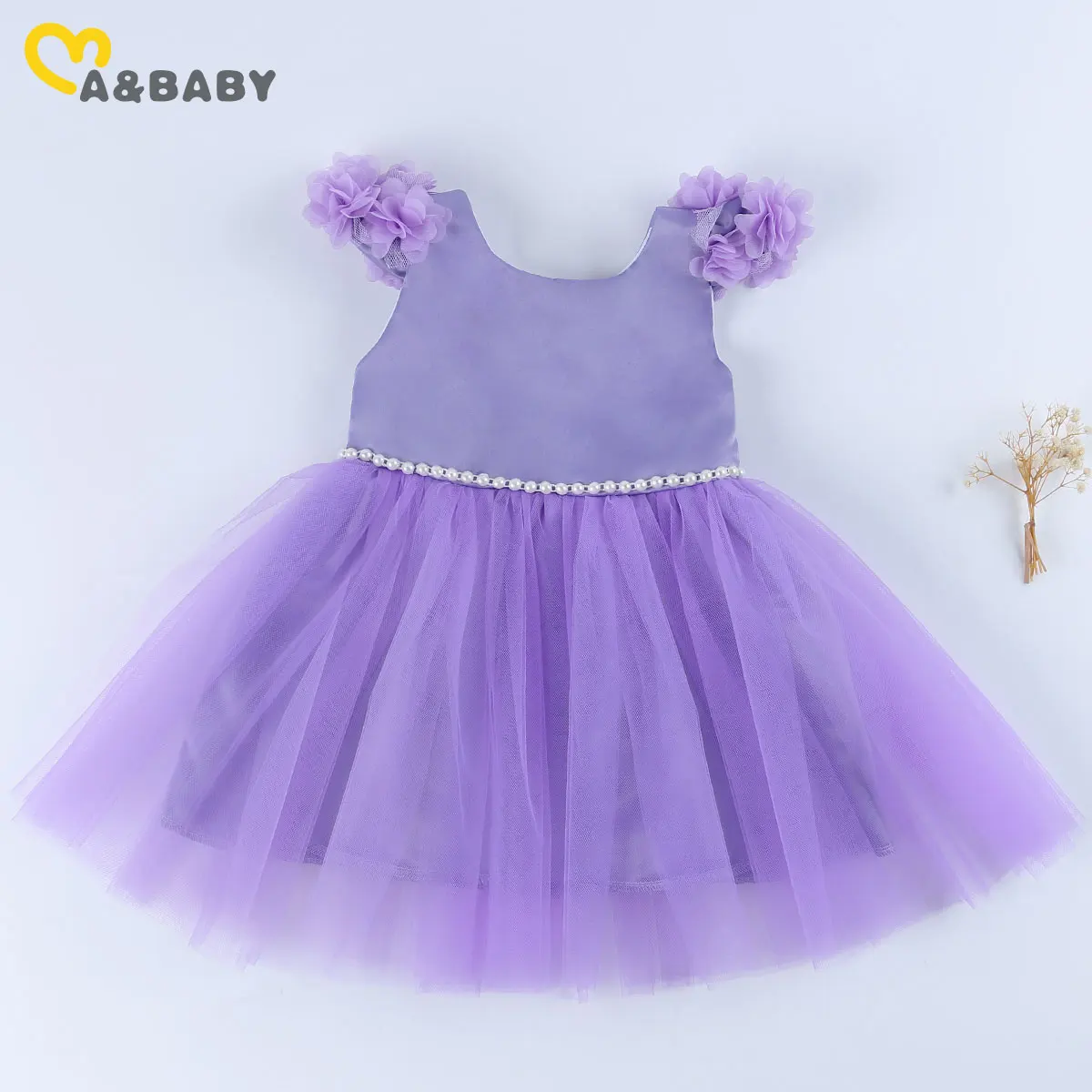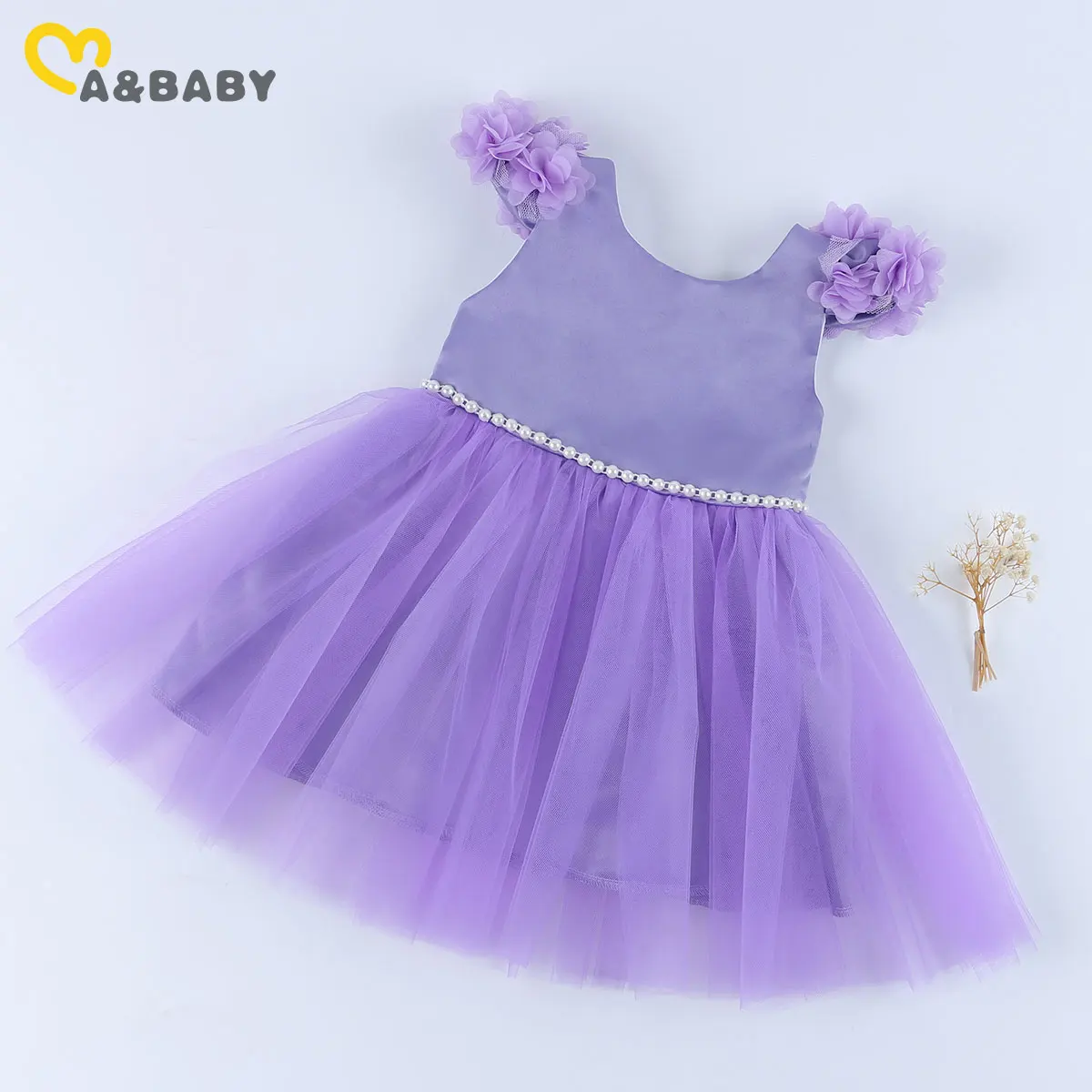 فساتين Ma & Baby للفتيات الصغيرات, فساتين توتو للبنات أعمار 6 شهور إلى 6 سنوات مزينة بالورود واللؤلؤ مناسبة للحفلات وأعياد الميلاد والزفاف