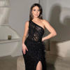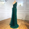 فستان سهرة أنيق بحورية البحر باللون الأخضر من Serene Hill فستان سهرة مثير بشريط واحد مطرز ريش 2023 للنساء LA70829