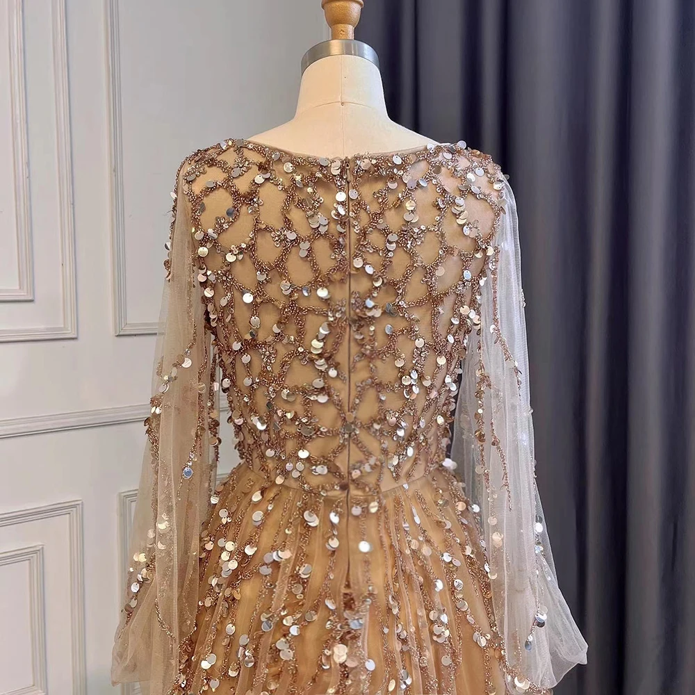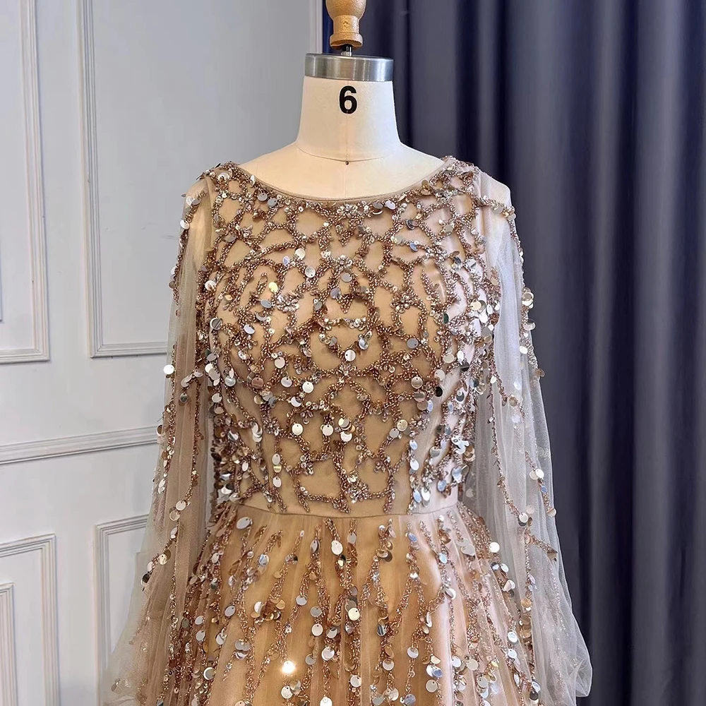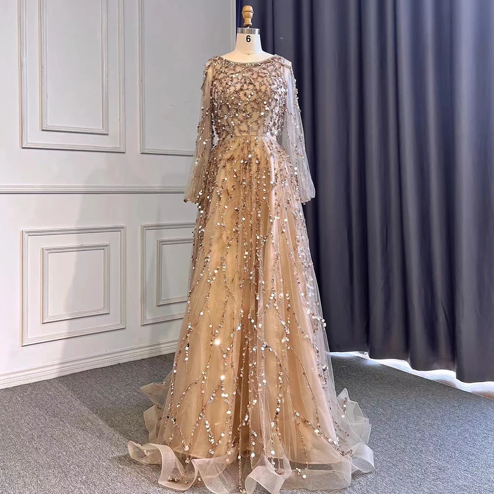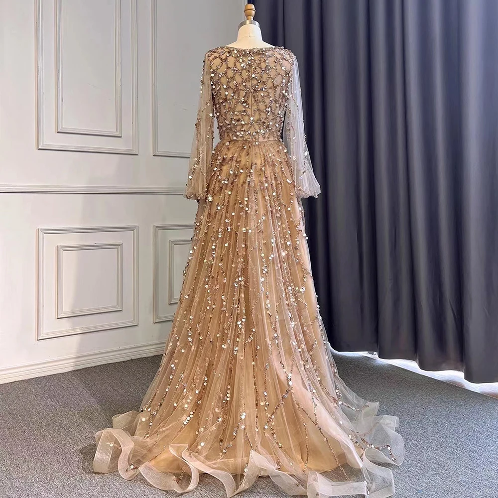 فستان سهرة فاخر من Serene Hill بلون أخضر على شكل حرف a لعام 2023 بأكمام منتفخة على شكل حرف o مطرز جذاب للحفلات الرسمية للنساء LA71049A
